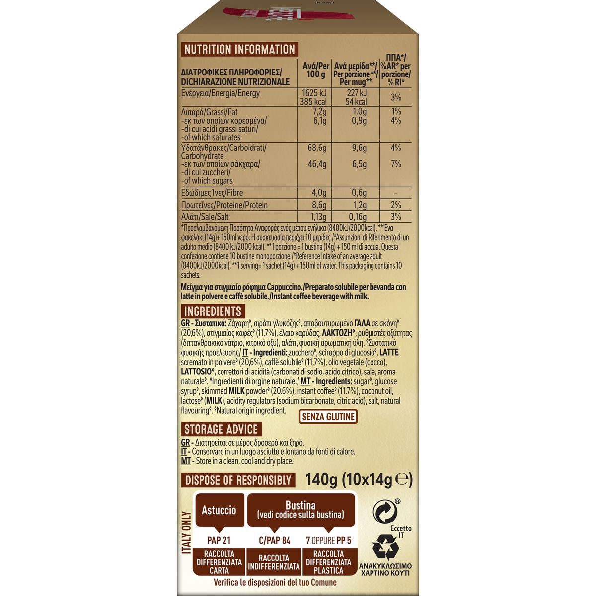Discover NESCAFE® GOLD Cappuccino! A harmoniously roasted blend of Arabica and Robusta coffees with finely ground coffee beans, a minty body, velvety cream, and a delicious taste. A caramel temptation in your cup with rich cream and a unique aroma in a coffee that takes the senses to the top.Want something smooth and uniquely indulgent, with a sensual taste and rich aroma? The solution is one, NESCAFE® GOLD CAPPUCCINO... An unprecedented taste experience unfolds before you, so simply!