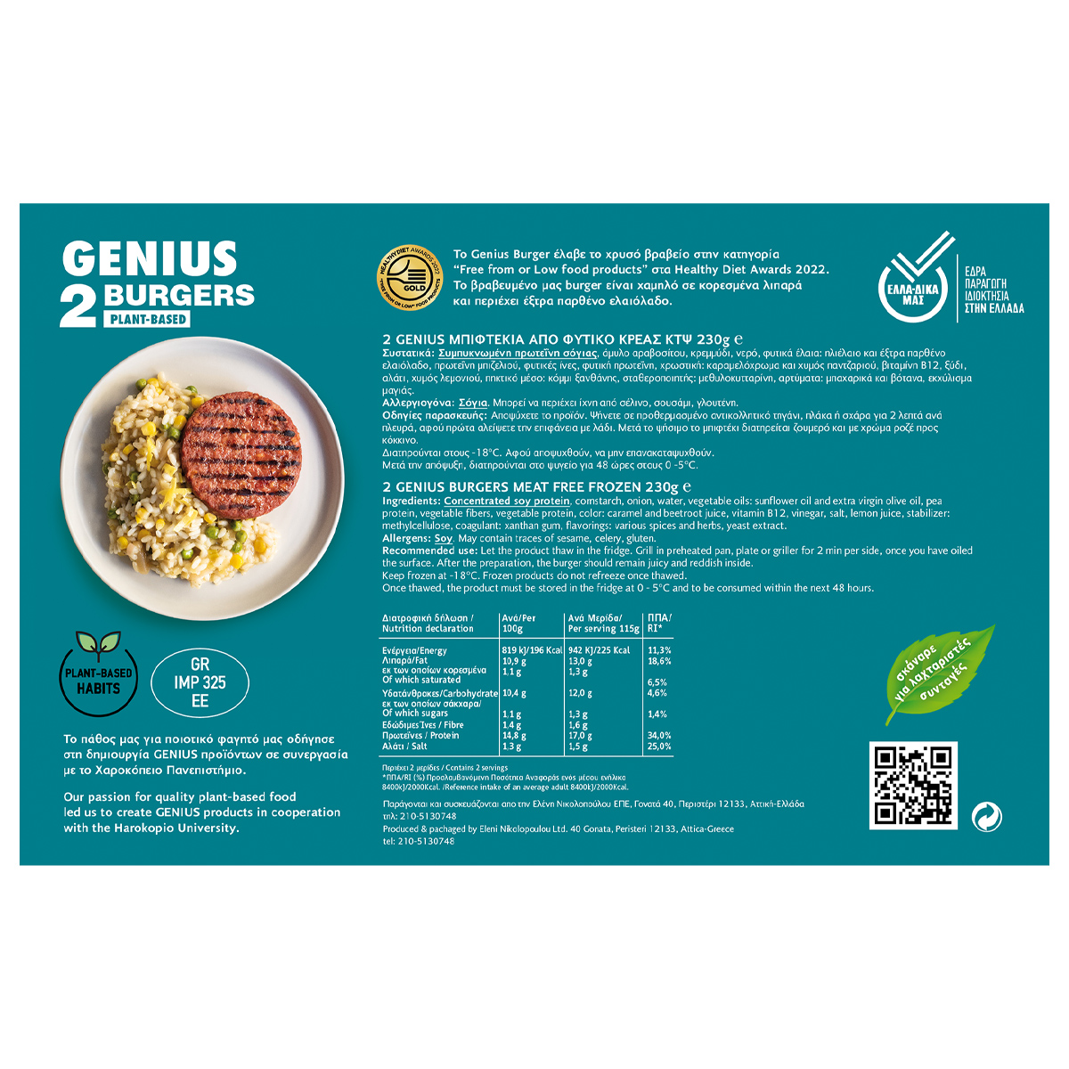 Nikolopoulou Genius Plant Based Burger Vegan 230 gr