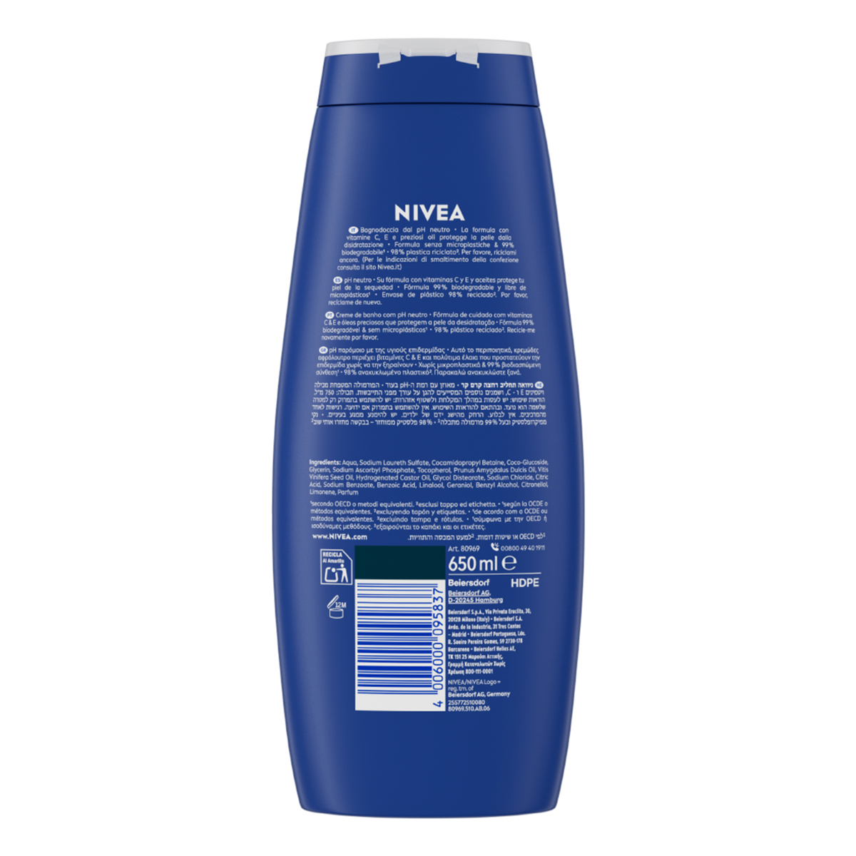 For an immediate sense of softness & healthy skin appearance that lasts. Conditioning Shower Gel with relaxing fragrance. Formulated with Vitamins C, E & precious oils that protect skin from drying out. 100% climate neutral product. No microplastics & 99% biodegradable formulation & 98% recycled plastic.