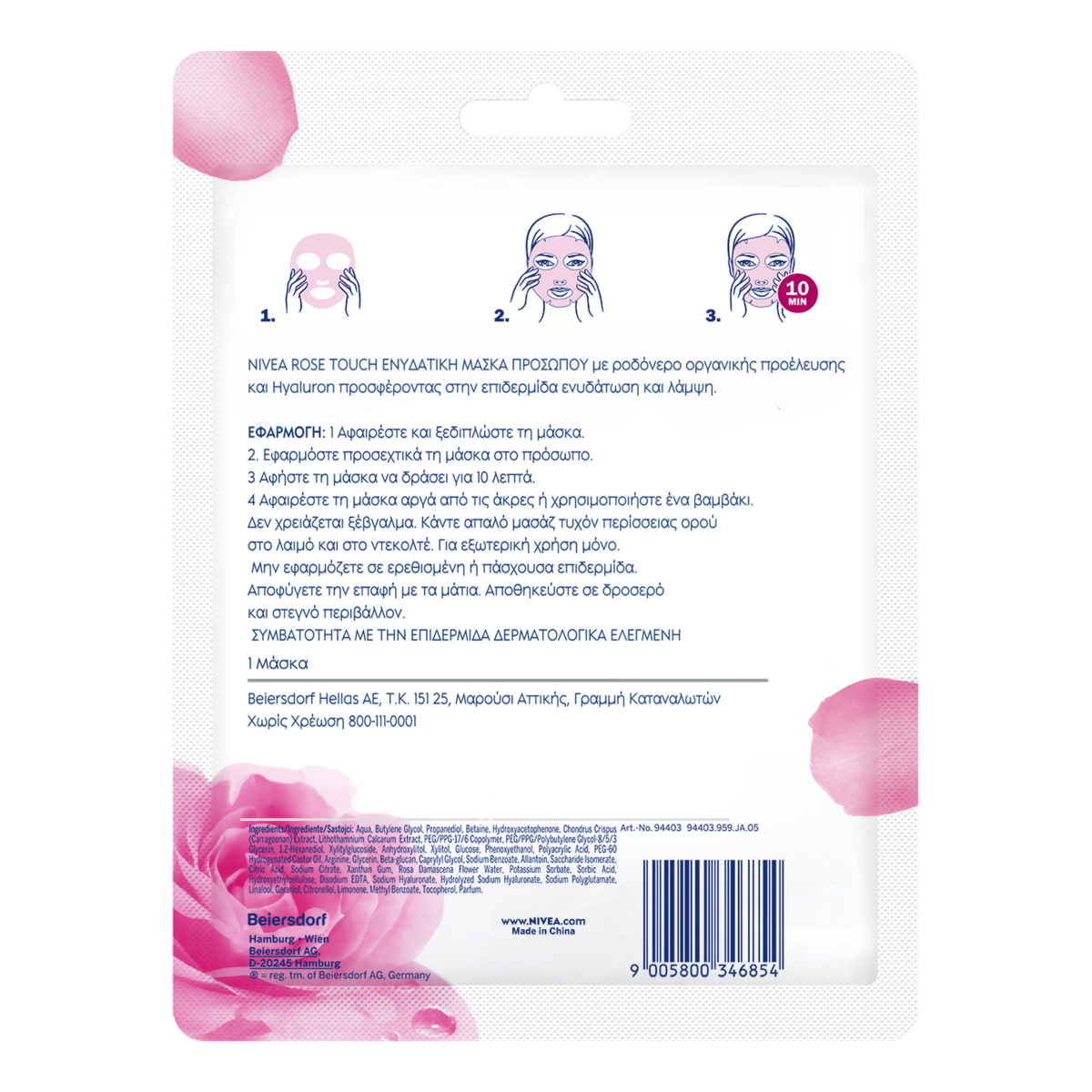 Χαρίστε στην επιδερμίδα σας τη φροντίδα που χρειάζεται χωρίς να αφιερώσετε πολύ χρόνο. Η NIVEA Rose Touch Ενυδατική Μάσκα Προσώπου είναι εμπλουτισμένη με ροδόνερο οργανικής προέλευσης και υαλουρονικό οξύ, συστατικά που προσφέρουν εντατική ενυδάτωση και φυσική λάμψη στην επιδερμίδα, σε μόλις 10 λέπτα μετά την εφαρμογή της μάσκας. Αποτέλεσμα: ενυδατωμένη, αναζωογονημένη και εξαιρετικά απαλή επιδερμίδα. Συμβατότητα με την επιδερμίδα δερματολογικά ελεγμένη Χαρίστε στην επιδερμίδα σας τη φροντίδα που χρειάζεται χωρίς να αφιερώσετε πολύ χρόνο. Η NIVEA Rose Touch Ενυδατική Μάσκα Προσώπου είναι εμπλουτισμένη με ροδόνερο οργανικής προέλευσης και υαλουρονικό οξύ, συστατικά που προσφέρουν εντατική ενυδάτωση και φυσική λάμψη στην επιδερμίδα, σε μόλις 10 λέπτα μετά την εφαρμογή της μάσκας. Αποτέλεσμα: ενυδατωμένη, αναζωογονημένη και εξαιρετικά απαλή επιδερμίδα.