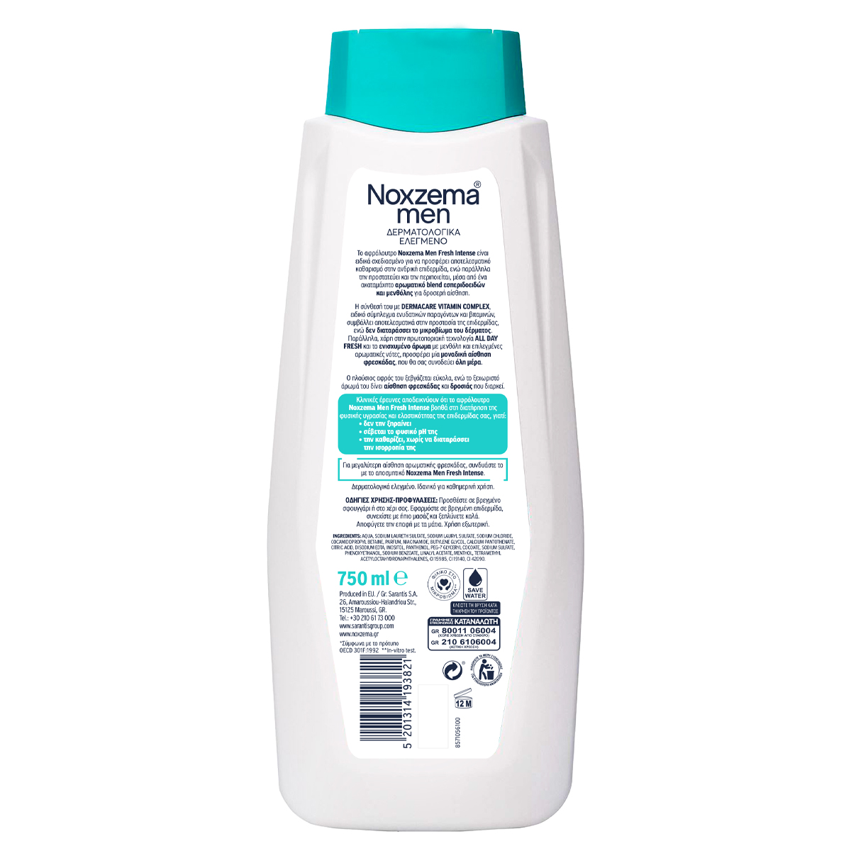 The Noxzema Fresh Intense men's shower gel is specially designed to effectively cleanse the skin, while protecting and caring for it through an irresistible aromatic blend of citrus and menthol for a cool sensation.Its composition with DERMACARE VITAMIN COMPLEX, a special complex of moisturizing ingredients and vitamins, contributes effectively to the protection of the skin, while not disturbing its microbiome.At the same time, thanks to the innovative ALL DAY FRESH technology and the enhanced fragrance with menthol and selected aromatic notes, it offers a unique feeling of freshness that will accompany you all day long.At the same time, thanks to the innovative ALL DAY FRESH technology and the enhanced fragrance with menthol and selected aromatic notes, it offers a unique feeling of freshness that will accompany you all day long.With a unique fragrance that refreshes and travels the senses!Dermatologically tested. Ideal for everyday use.