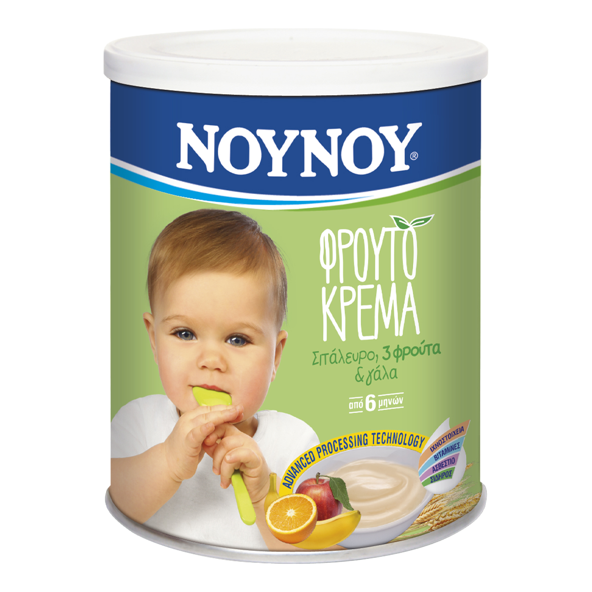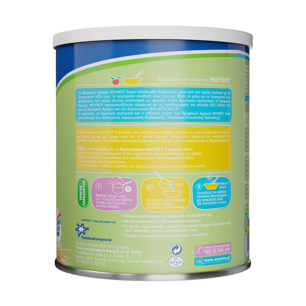 The Fruit Cream 3 Fruit NUNU with wheat flour and milk is enriched with essential vitamins, iron and minerals. With a combination of 3 fruits (apple, banana and orange), it is tasty and easy to digest.