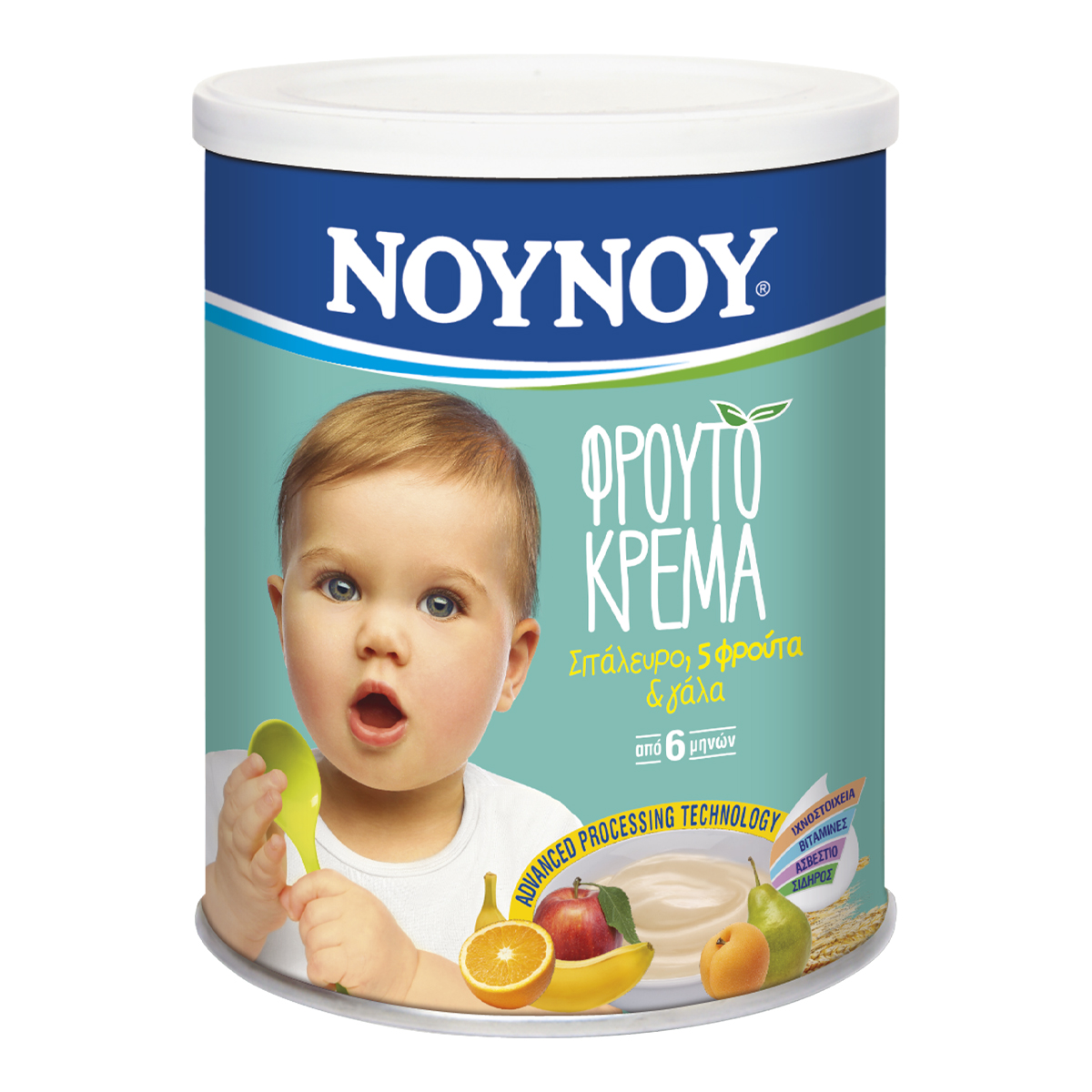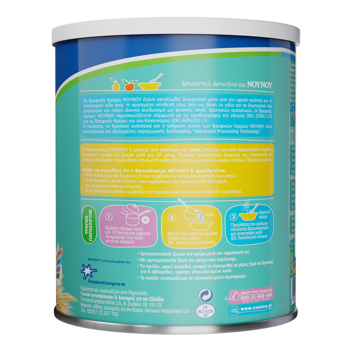 The Fruit Cream 5 Fruit NUNU with wheat flour and milk is enriched with essential vitamins, iron and minerals. With a combination of 5 fruits (apple, banana, orange, apricot and pear), it is tasty and easy to digest.