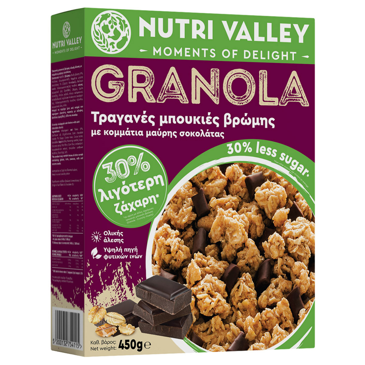 Nutri Valley Granola Crispy Biscuits With Bromine & Dark Chocolate 30% Less Sugar 450 gr