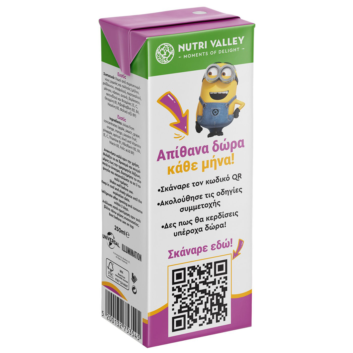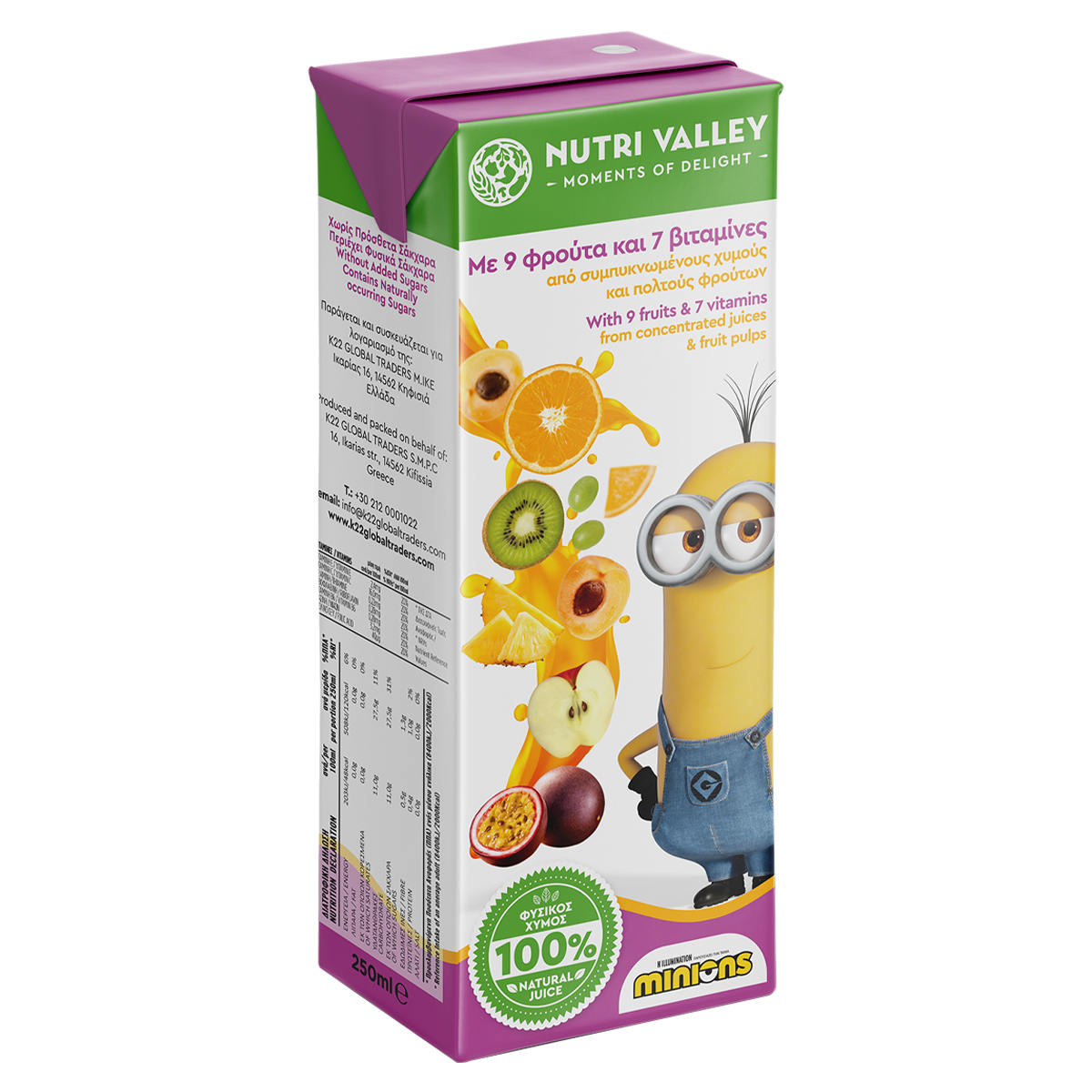 Nutri Valley Minions Exotic 9 Fruits. The 100% natural juice with nine fruits and 7 vitamins gives exotic taste and enjoyment to the whole family.