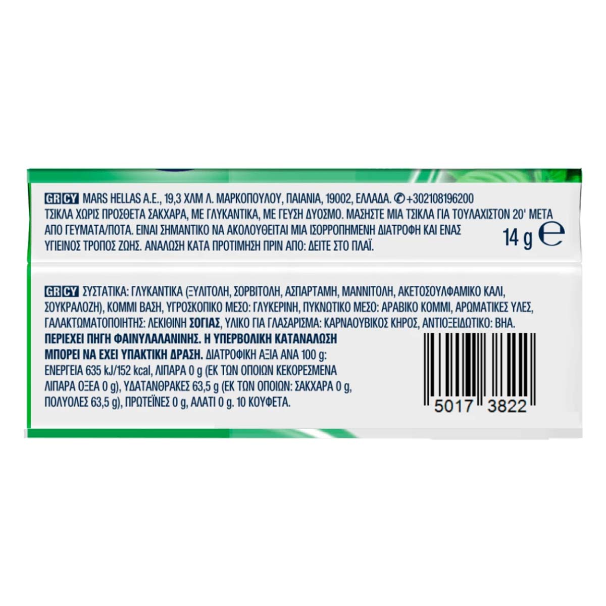 MARS HELLAS S.A., 19,3 km Markopoulou Avenue, P.O. Box 190 02 Peania, Attica, Greece, Tel: 210 8196200, Email: mars.hellas@effem.com