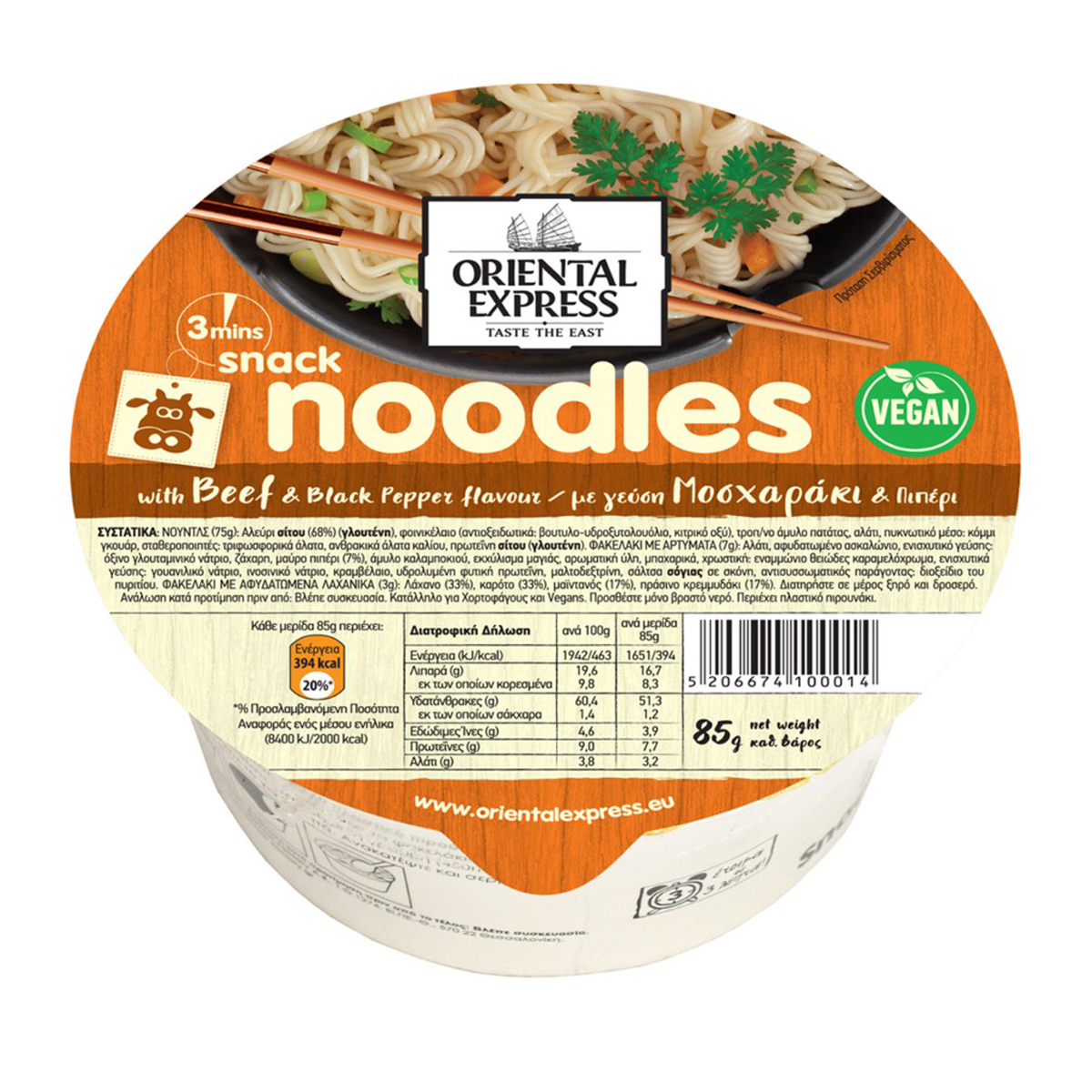 Oriental Express Noodles Με Μοσχαράκι & Πιπέρι Vegan 85 gr
