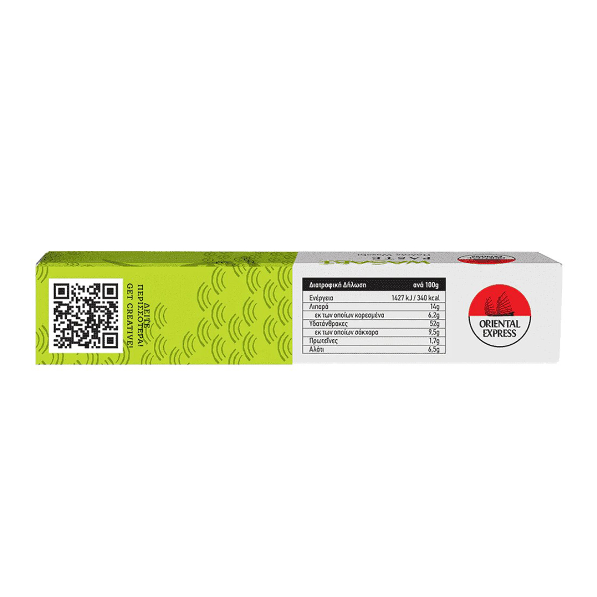 Water, horseradish powder, refined WHEY OIL, sweetener: sorbitol, corn starch, salt, LACTOSE, Wasabi Japonica (1,6%), turmeric, flavouring (contains MUSTARD), thickening agents: xanthan gum, colouring agent: bright cyan Fcf.
