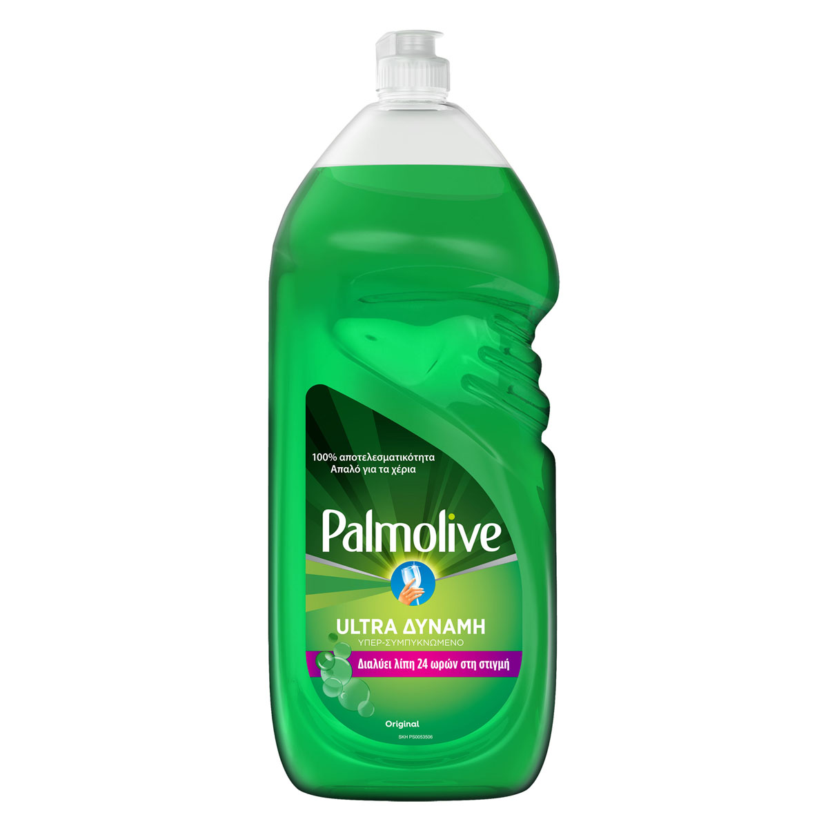 Palmolive dishwashing liquid with concentrated composition for sparkling clean dishes. 100% Effectiveness. Dissolves grease in an instant...removes grease and food residues up to 24h afterwards. Effective even in cold water. Cleans up to 2200 dishes per litre!