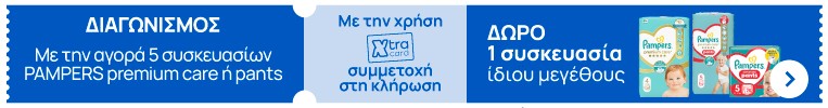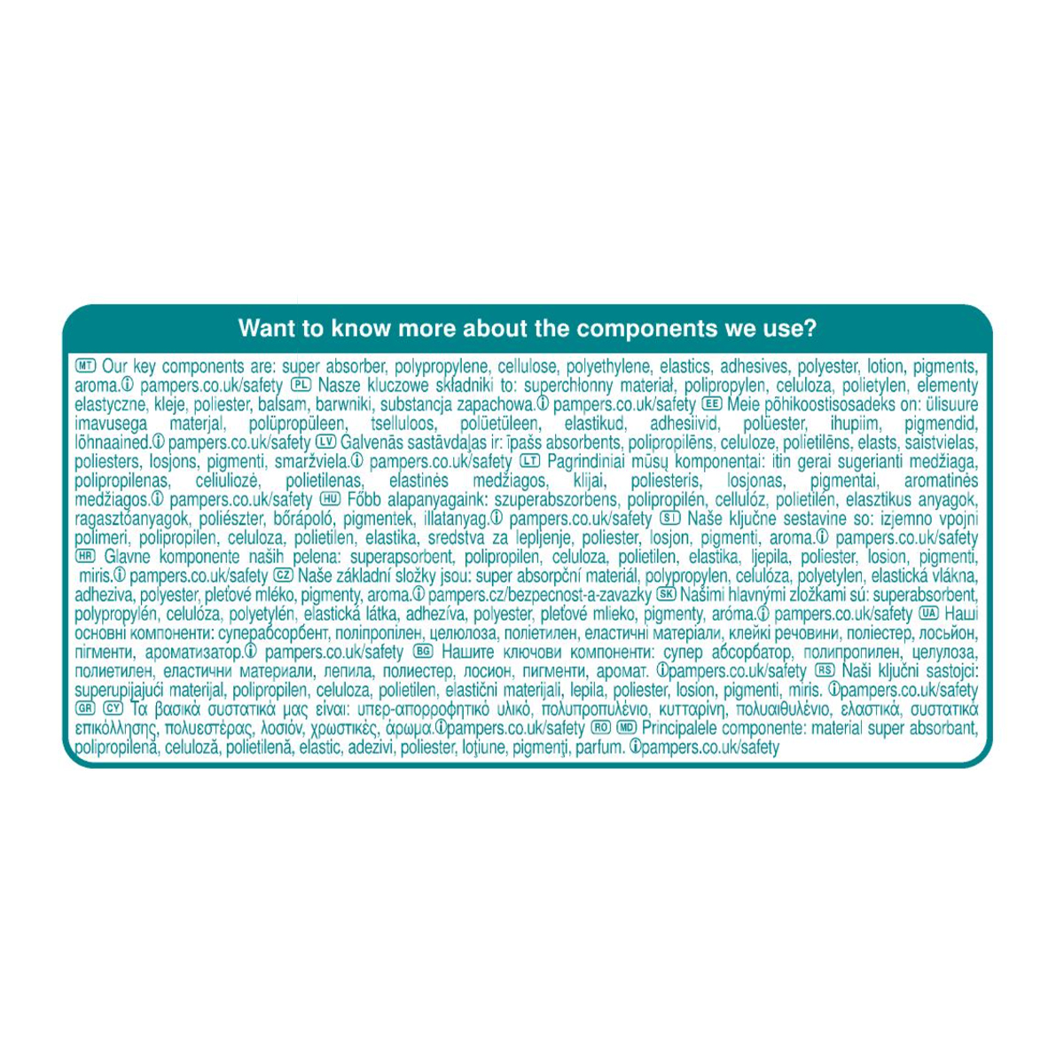 From the moment your baby starts moving, he or she is a little champion who rolls, stretches and climbs to discover the world. He needs the BEST Pampers diaper pants: their special Stop & Protect design helps protect against leaks at the back of the diaper, their 360° circumferential elastic waistband fits snugly around your baby's body to prevent gaps and leaks, the double protectors on the legs help prevent leaks around them for up to 12 hours of leak protection. Like all Pampers pants diapers, the Pampers Pants diaper is easy to change even when your baby is moving around vigorously: Pull up to put it on, tear the sides to take it off, and tape it on for easy disposal. Just like you, Pampers puts your baby's safety first: Pampers Pants diapers are dermatologically tested and do not contain allergenic fragrance substances (as defined in European Cosmetics Regulation No. 1223/2009). They have been approved by the dermatologists of the Skin Health Alliance and are OEKO-TEX Standard 100 certified. Want to know more about the ingredients Pampers use? Visit pampers.gr