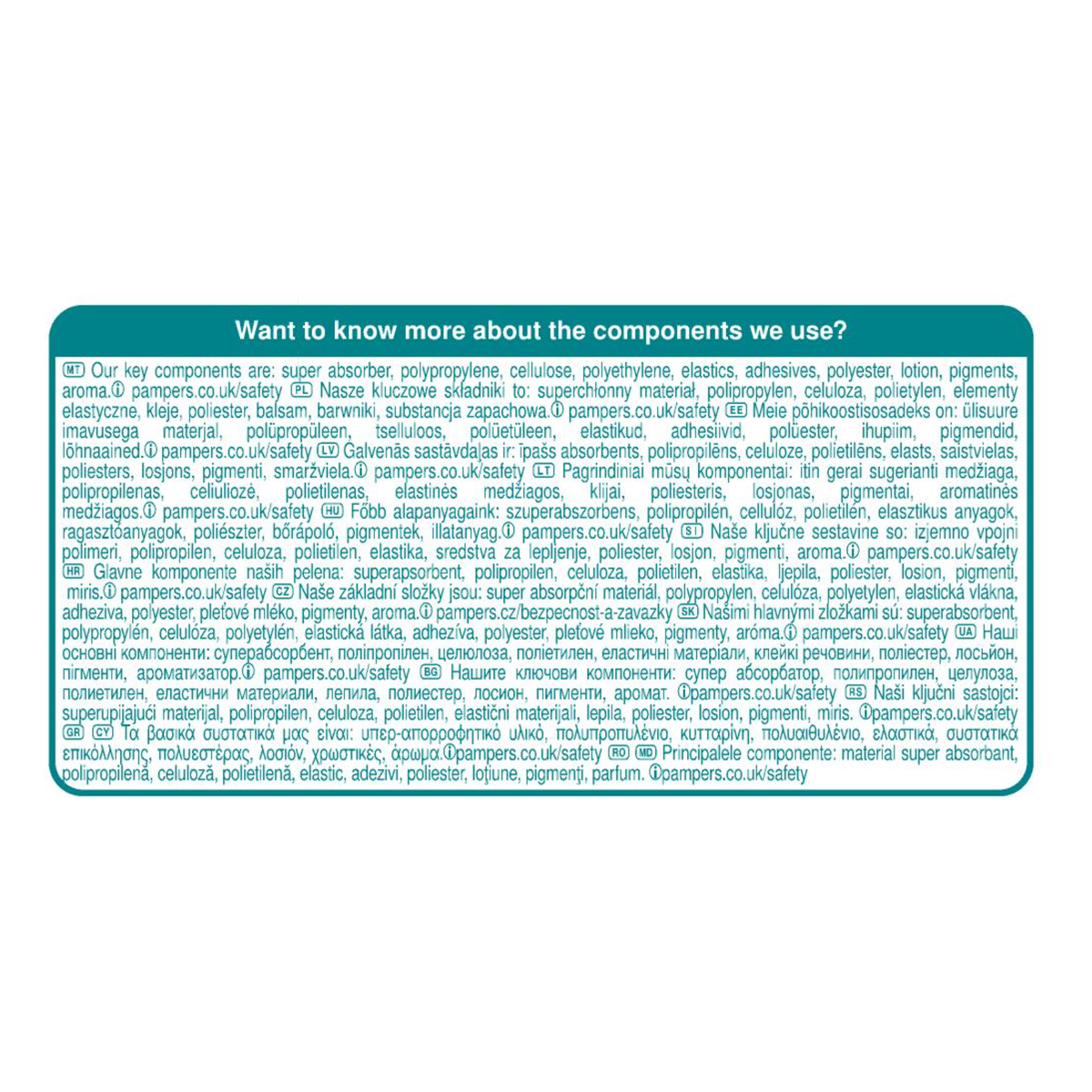 Pampers Pants diapers feature the revolutionary special STOP & PROTECT design that, combined with the 360° perimeter fit, offers up to 12 hours of protection from any leakage. They also have a highly absorbent core that instantly absorbs moisture and double leg protectors that prevent leaks. When your baby starts squirming at diaper changes, Pampers Pants diaper pants make the changing process easier: thanks to the elastic waist, they can be worn in a single movement. Tear the sides to remove it and tape it on for easy disposal. Just like you, for Pampers, your baby's safety comes first: Pampers Pants are dermatologically tested and contain no allergenic fragrance (as defined in EU Cosmetics Regulation No. 1223/2009). They have been approved by dermatologists at the Skin Health Alliance as safe for contact with baby's skin. Want to know more about the ingredients? Visit pampers.gr