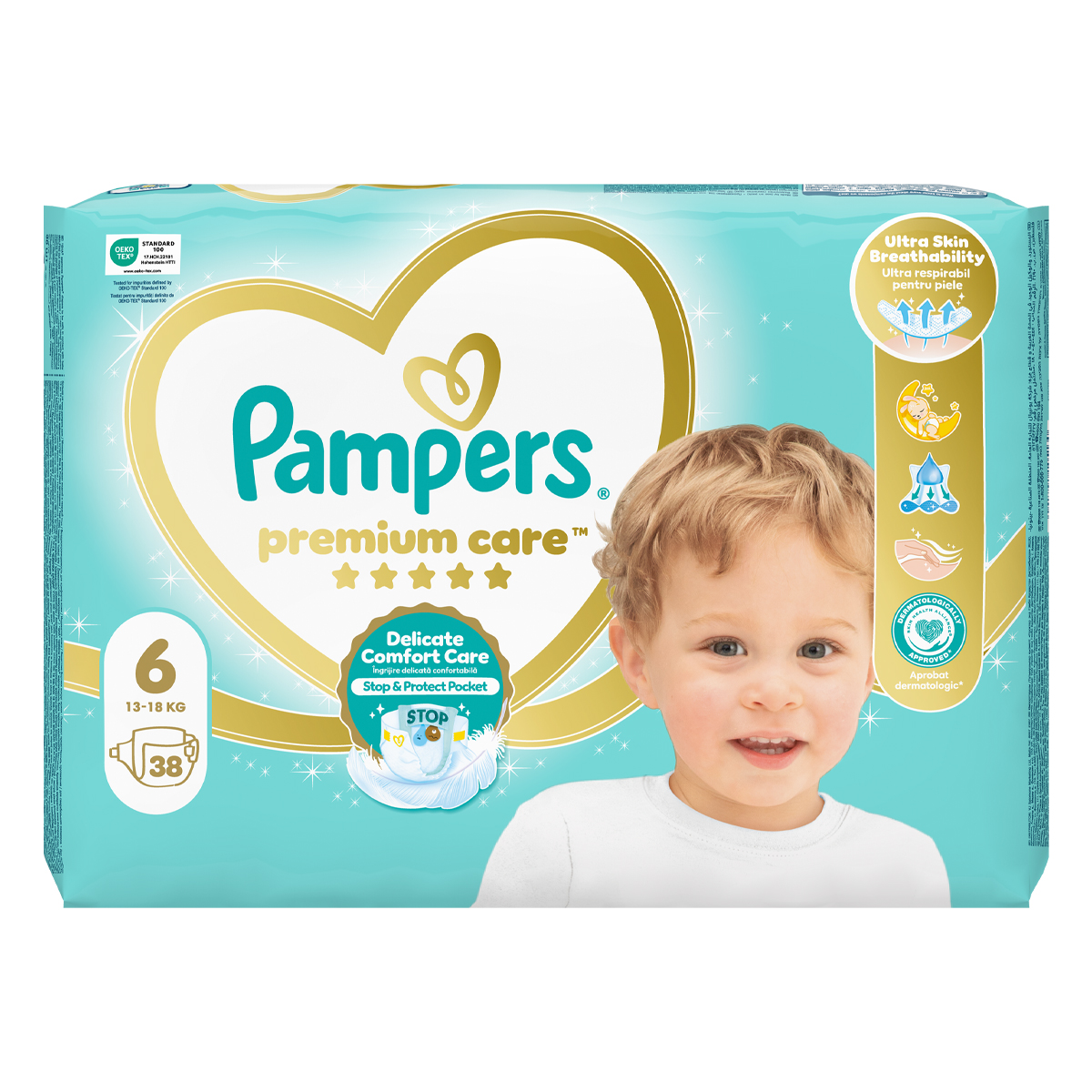 The softest comfort and the ideal protection from Pampers for babies' sensitive skin. Prolonged contact with pee and poo can affect your baby's sensitive skin and may cause discomfort or irritation. Pampers Premium Care diapers are specially designed to offer the softest comfort and ideal protection from Pampers thanks to. This keeps your baby's delicate skin dry and protected. 2) Millions of micropores, allow air to flow freely in the diaper to keep skin dry. 3) Leak protection for up to 12 hours thanks to a unique triple protection system that absorbs pee quickly, and helps protect against leaks, at the waist and around the legs. 4) Pillows made of ultra-soft materials that hug your baby's skin in a cloud of protection & comfort. They are dermatologically tested and do not contain any of the 26 allergenic fragrance substances (as defined in the European Regulation).