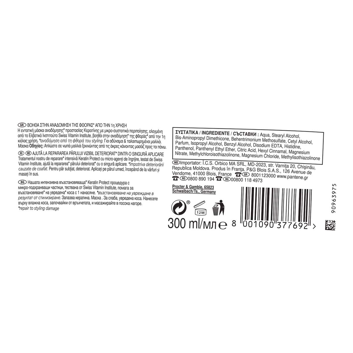 PREVIOUS PANTENTE PRO-V COMPOSITION: Our rich, intensive rebuilding mask with micro-ingredients helps to keep moisture deep inside the hair and protect your hair against damage from styling, leaving it shiny, healthy-looking.