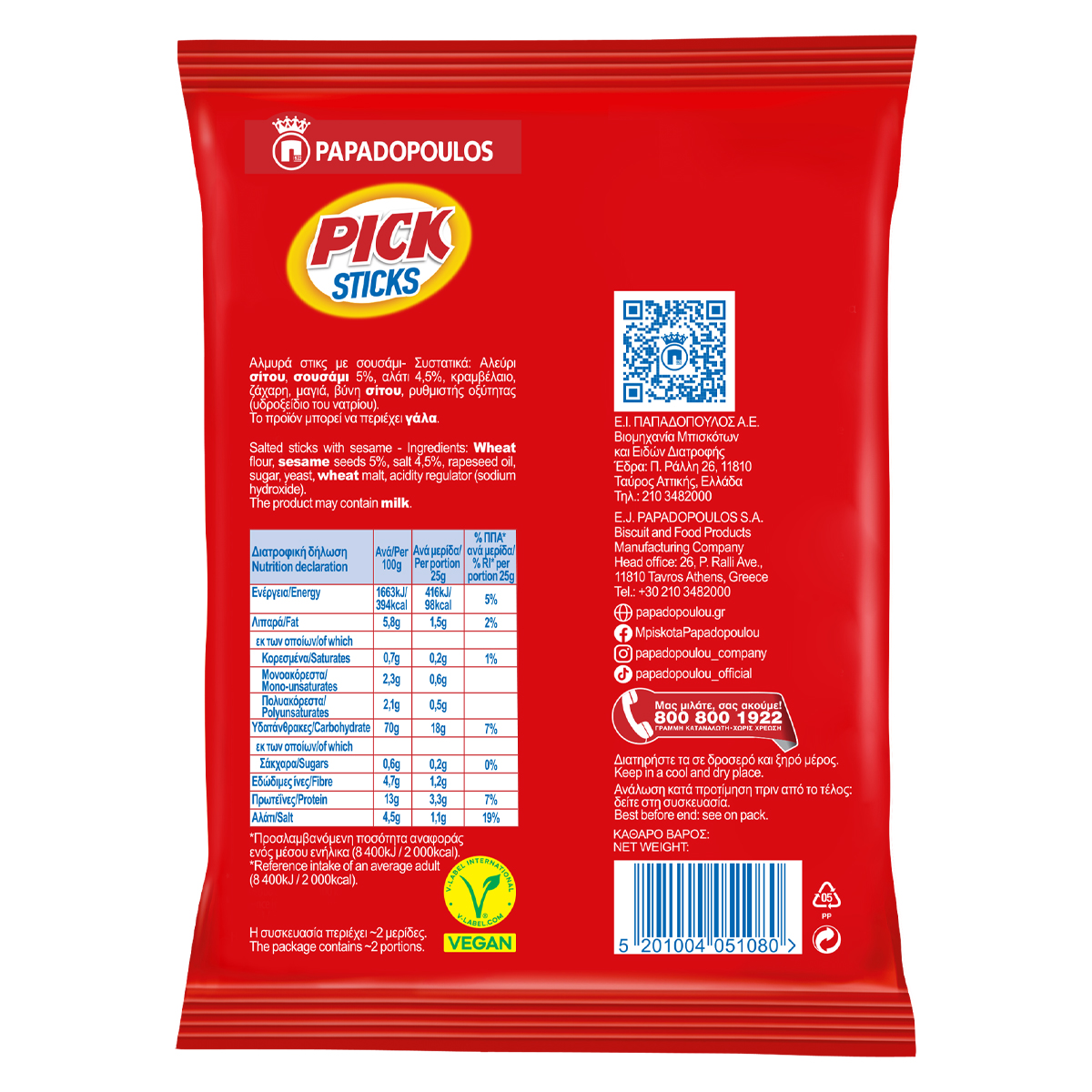 Παπαδοπούλου Pick Sticks Με Σουσάμι Vegan 45 gr