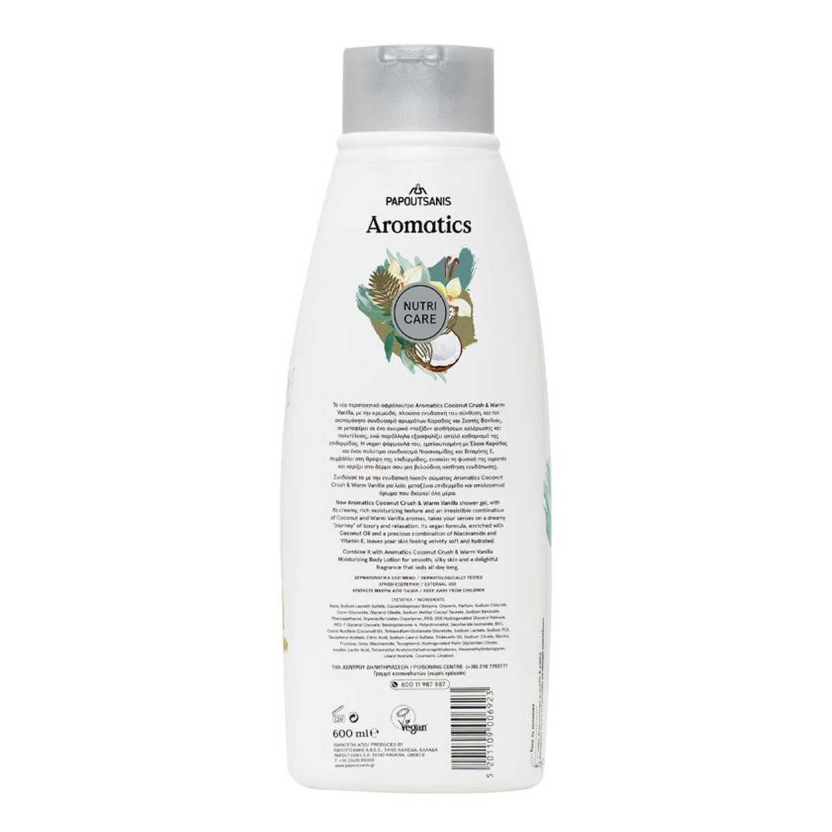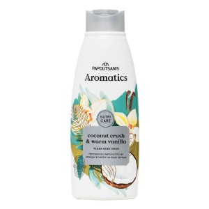 The new Aromatics Coconut Crush & Warm Vanilla moisturizing body lotion, with its rich caring composition and the irresistible combination of Coconut and Warm Vanilla fragrances, takes you on a dreamy "journey" of sensations and silky softness. Its vegan formula, enriched with Coconut Oil and Nutricare, a combination of Niacinamide and Vitamin E, is easily absorbed, enhancing the skin's natural elasticity, leaving your skin hydrated and velvety soft.