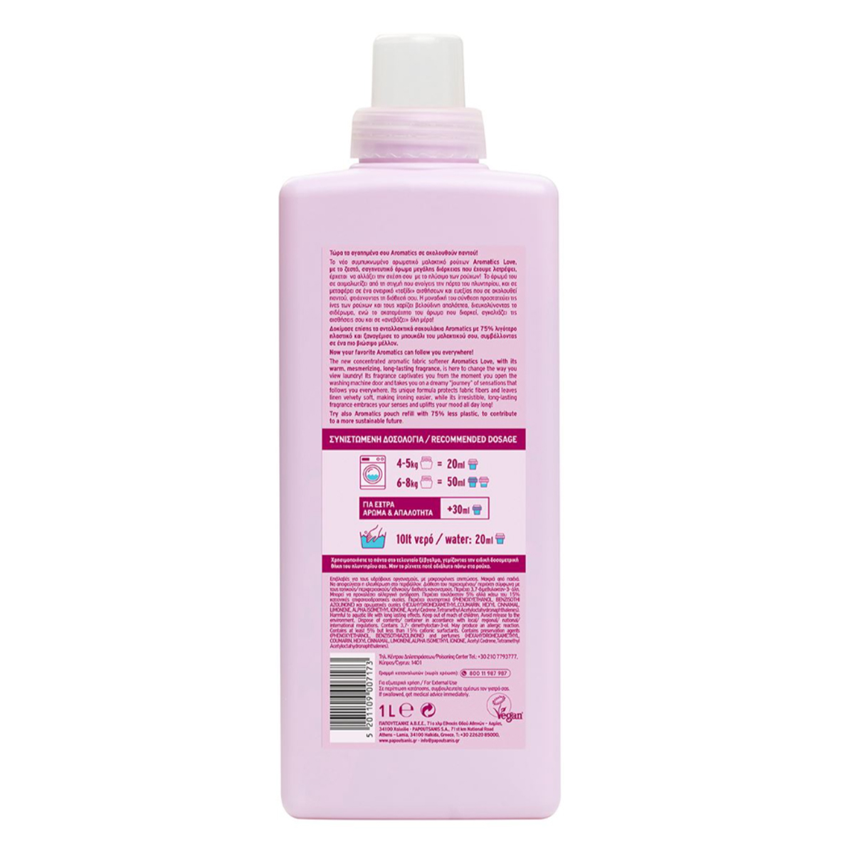 The new Aromatics Love concentrated aromatic fabric softener, with the warm, seductive, long-lasting fragrance we've come to love, comes to change your relationship with laundry! Its fragrance captivates you from the moment you open the laundry door and takes you on a dreamy "journey" of sensations and well-being that follows you everywhere, lifting your mood. Its unique formula protects the fibres of your clothes and gives them a velvety softness, making ironing easier, while its irresistible, long-lasting fragrance embraces your senses and "uplifts" you all day long!