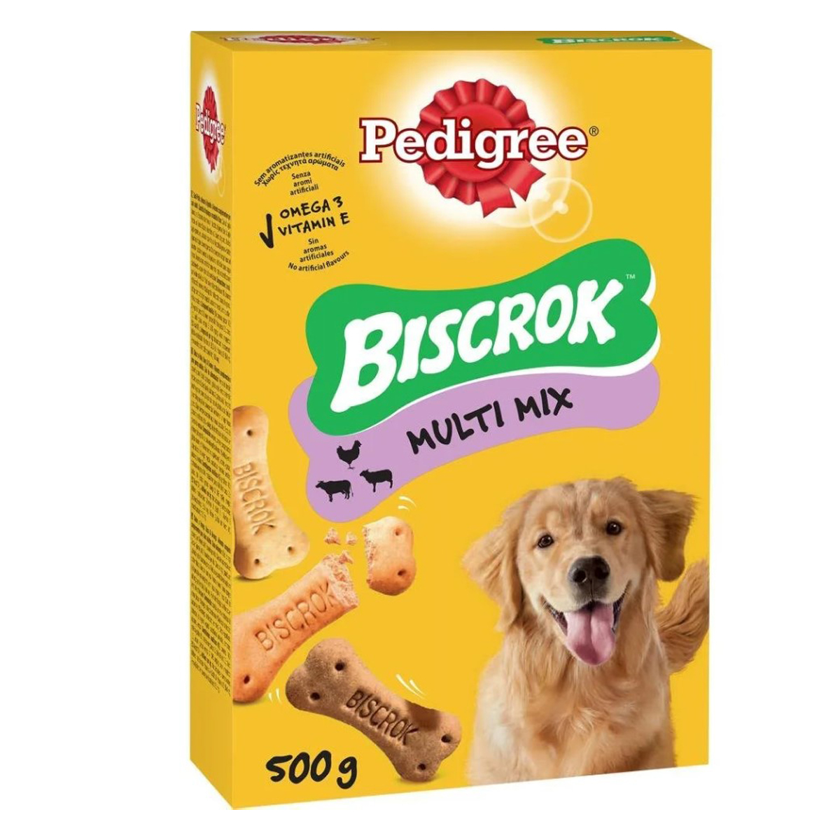 BISCROK® are crispy biscuits in 3 delicious flavours. Dogs love to play and BISCROK is a way to give them more than just a treat. Delicious treats and complete wet and dry food for all dogs. Omega 3's that help keep him in shape. Vitamins that help maintain the body's natural defenses. Mineral salts including calcium that help maintain good bone condition. Complementary food for adult dogs. No artificial colours or flavours.