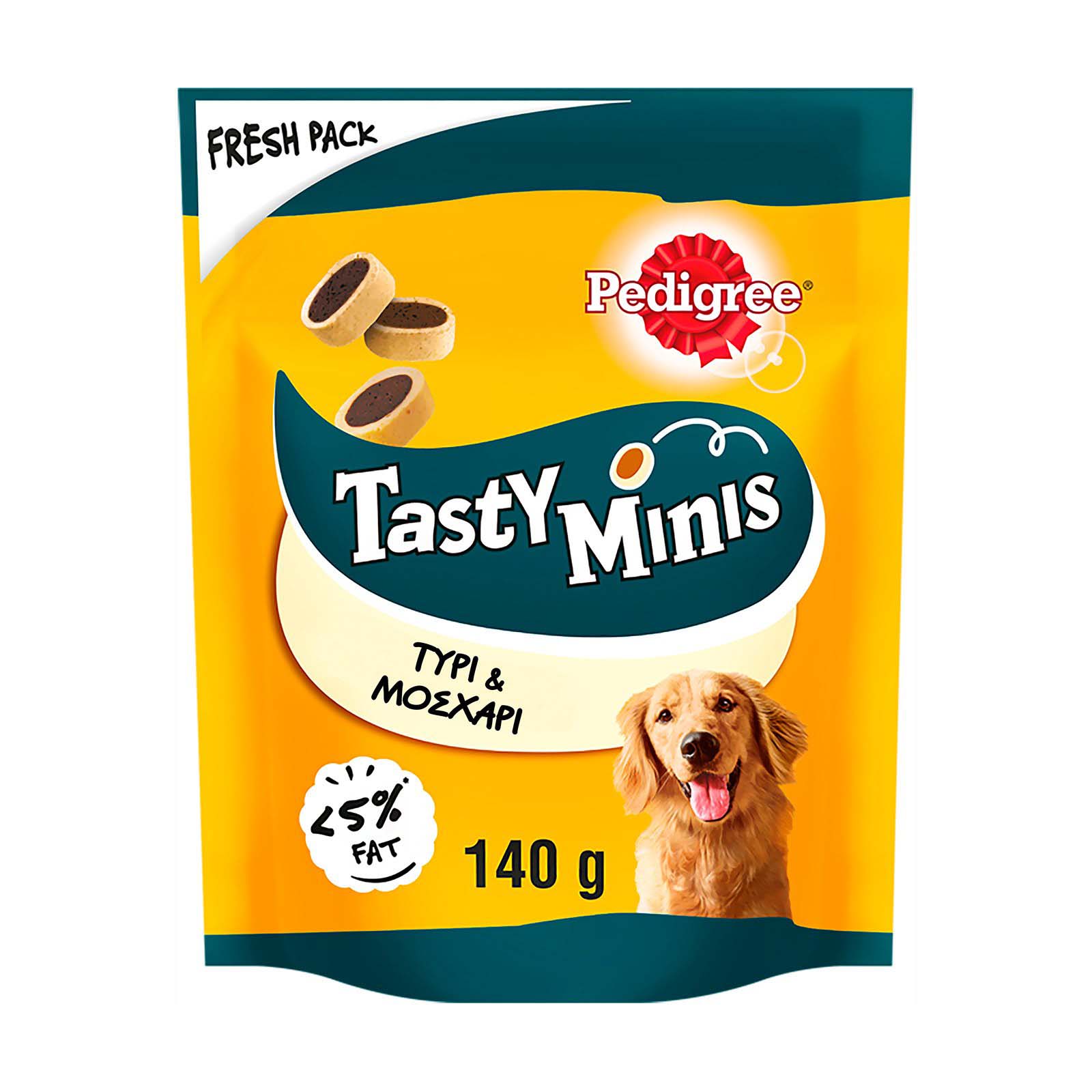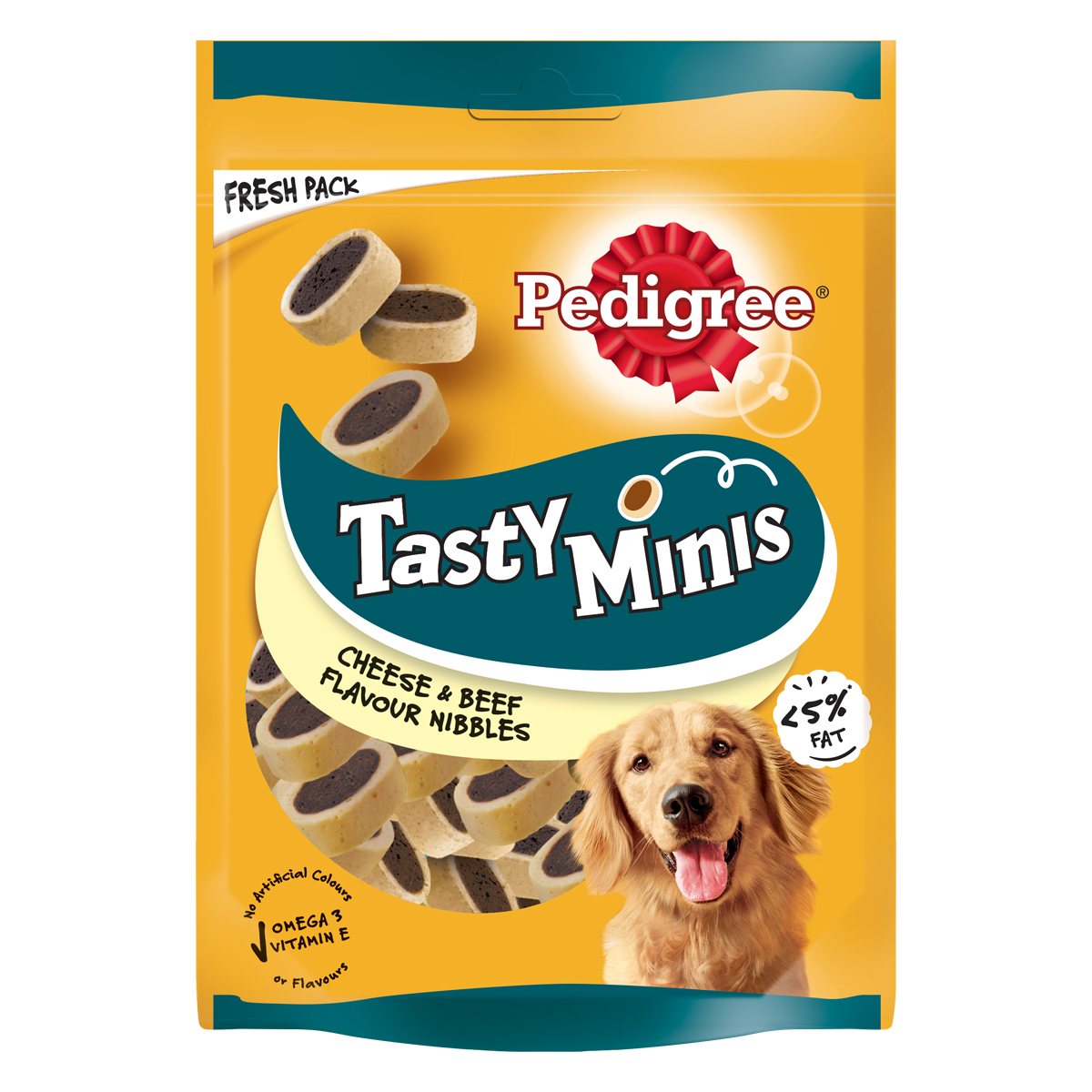 Tasty Minis are delicious treats in bite-sized bites for dogs of all sizes with irresistible taste and a variety of shapes and textures. They are ideal for eating on walks away from home, with special resealable packaging. Pedigree® Tasty Minis are rich in calcium, vitamins, minerals and omega 3 and contain no artificial colours or flavours. They combine the nutritional value and tasty treat that dogs love.