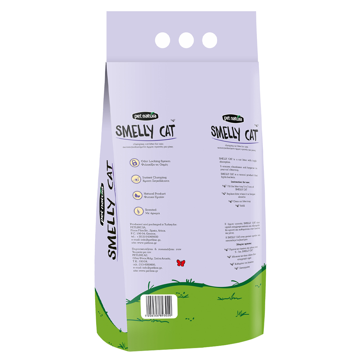 Self-adhesive sanitary litter for cats. SMELLY CAT litter has high absorbency and ensures hygiene and cleanliness in the cat's litter box. SMELLY CAT is a natural product and fights bacteria. It keeps odours at bay. Immediate Adhesion. With fragrance.