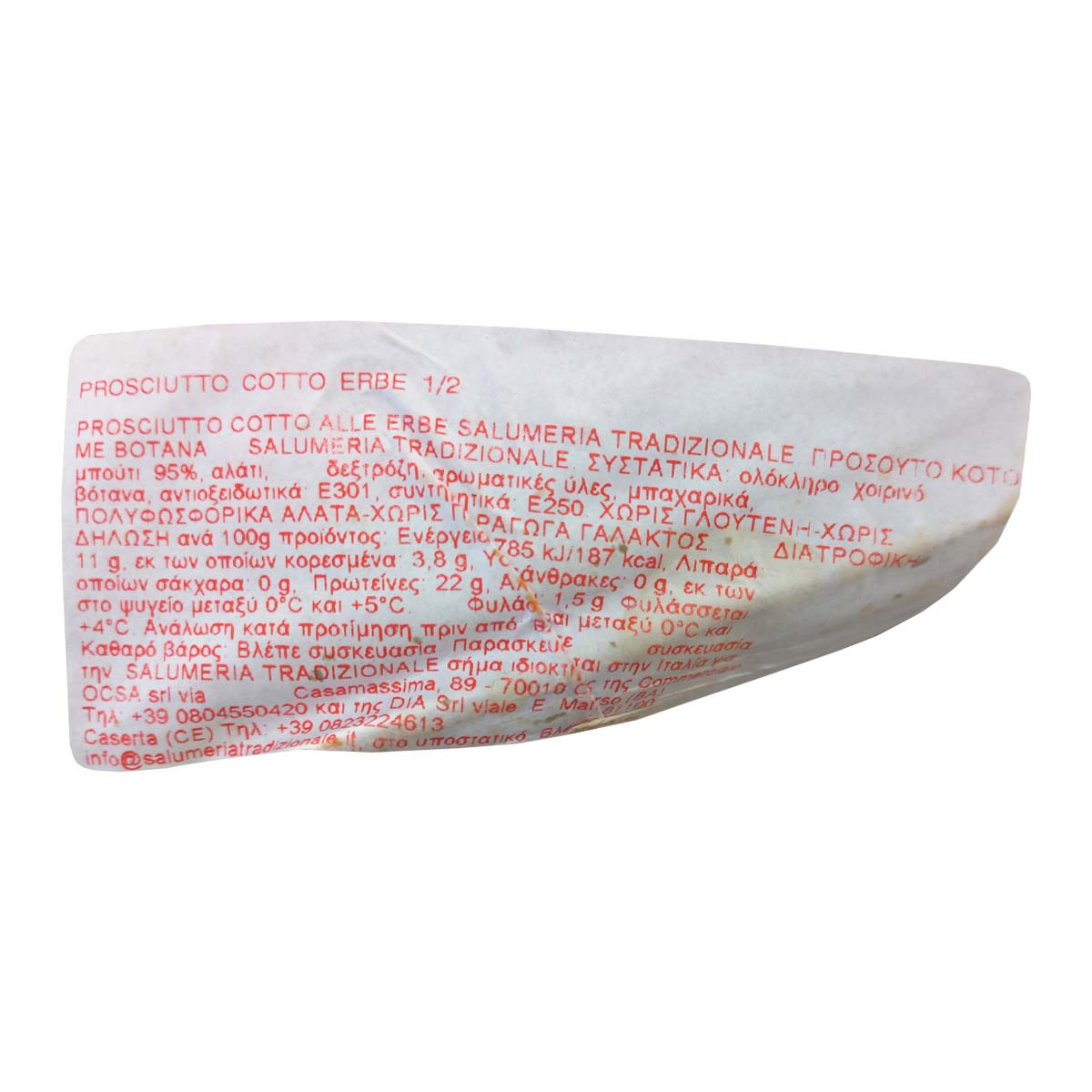 Whole pork leg 95%, salt, dextrose, flavourings, spices, herbs, antioxidants: E301, preservatives: 250.