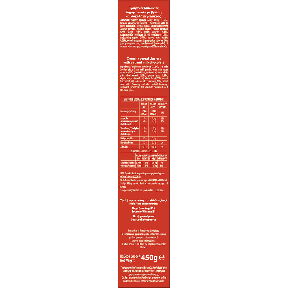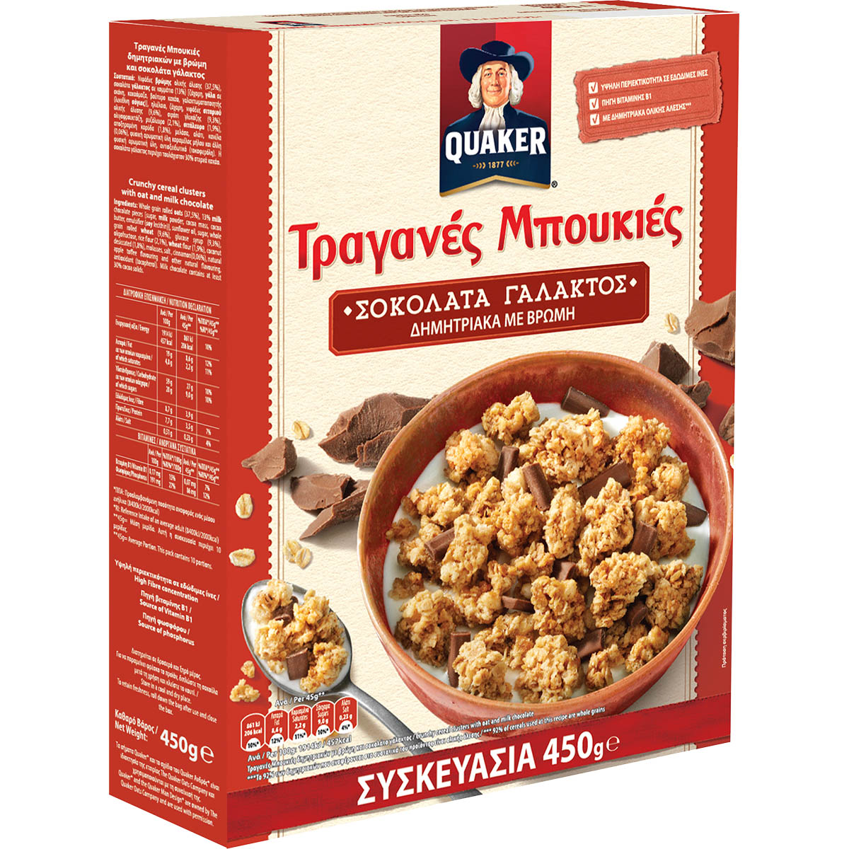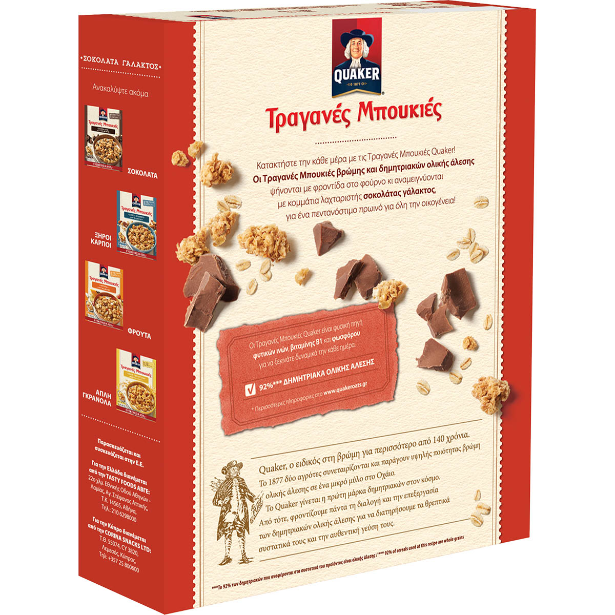 Just try them! We all know how important a nutritious breakfast is for a life full of energy. QUAKER, products with a long history, unleash the power of oats every day and are your "ally" for the ideal start of the day. Oats are a cereal with a high edible fibre content and are also a source of vitamin B1. These valuable ingredients are brought to your plate every day by Quaker Crunchy Bites with oats and milk chocolate.