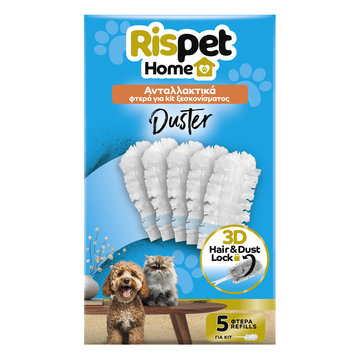 Το φτερό ξεσκονίσματος Rispet Duster με τις 3-D πυκνές και ευέλικτες ίνες του μαγνητίζει και παγιδεύει αποτελεσματικά τη σκόνη, τη βρωμιά και τις τρίχες των κατοικιδίων, προσφέροντας αστραφτερή καθαριότητα. Εγκλωβίζει τη σκόνη και τις τρίχες από κάθε επιφάνεια, φτάνοντας εύκολα ακόμα και στις πιο δύσκολες γωνίες και χαραμάδες. Χάρη στον ευέλικτο σχεδιασμό του, απομακρύνει αποτελεσματικά τους ρύπους, χωρίς να τους διασκορπίζει στο χώρο, ενώ η απαλή σύνθεσή του προστατεύει τις επιφάνειες από φθορές. Κατάλληλο για επιφάνειες με αντιθαμβωτική επίστρωση, όπως τηλεοράσεις και οθόνες Η/Υ. Συνδυάστε τα ανταλλακτικά Rispet μαζί με τη λαβή Rispet Home. Το ανταλλακτικό φτερό ξεσκονίσματος προσφέρει άνεση και πρακτικότητα, καθώς μπορεί να αντικατασταθεί εύκολα και γρήγορα. Ανακινήστε το πριν τη χρήση για καλύτερα αποτελέσματα. Εύκολη πρόσβαση σε κάθε γωνιά του σπιτιού. Κατάλληλο για χώρους με κατοικίδια.