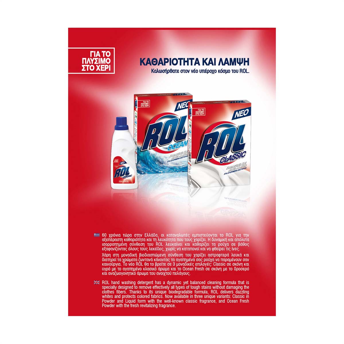 The dynamic and perfectly balanced formula of ROL Classic whitens and cleans clothes in depth, eliminating all stains, even those that other detergents cannot deal with, without stressing and wearing out the fibres of the clothes. ROL Classic gives unsurpassed cleanliness and makes clothes sparkling, all fresh.