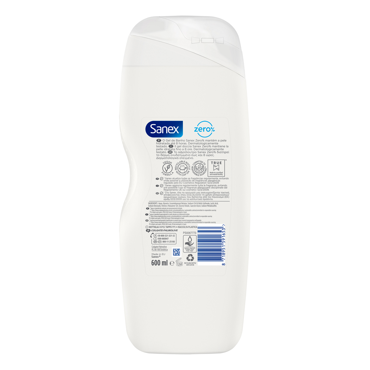 Sanex Zero% Nourishing hypoallergenic shower gel contains 0% soap, sulphates* & dyes. The soap-free shower gel keeps skin moisturized for 8 hours.*No sulfates.