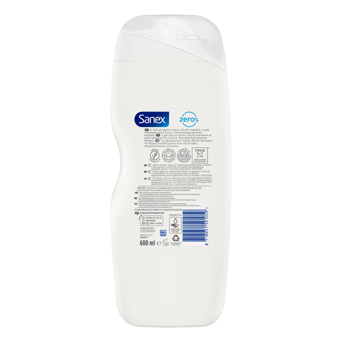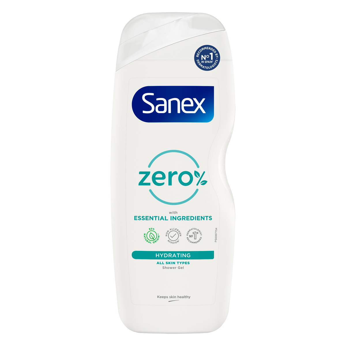 Sanex Zero% Hydrating hypoallergenic shower gel contains 0% soap, sulphates* & dyes. The soap-free shower gel keeps skin hydrated for 8 hours.*No sulfates.