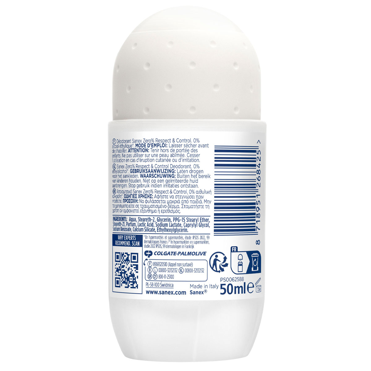 Sanex Zero% Respect & Control deodorant roll-on offers effective protection against odor for up to 48 hours thanks to its triple action. The deodorant roll-on is skin-friendly.