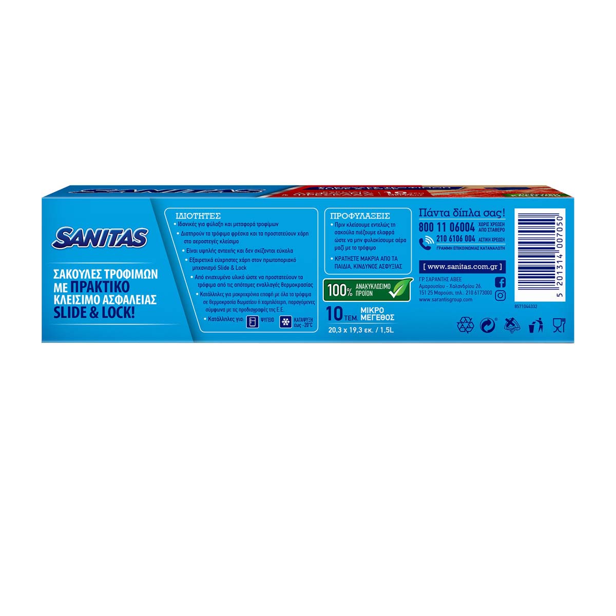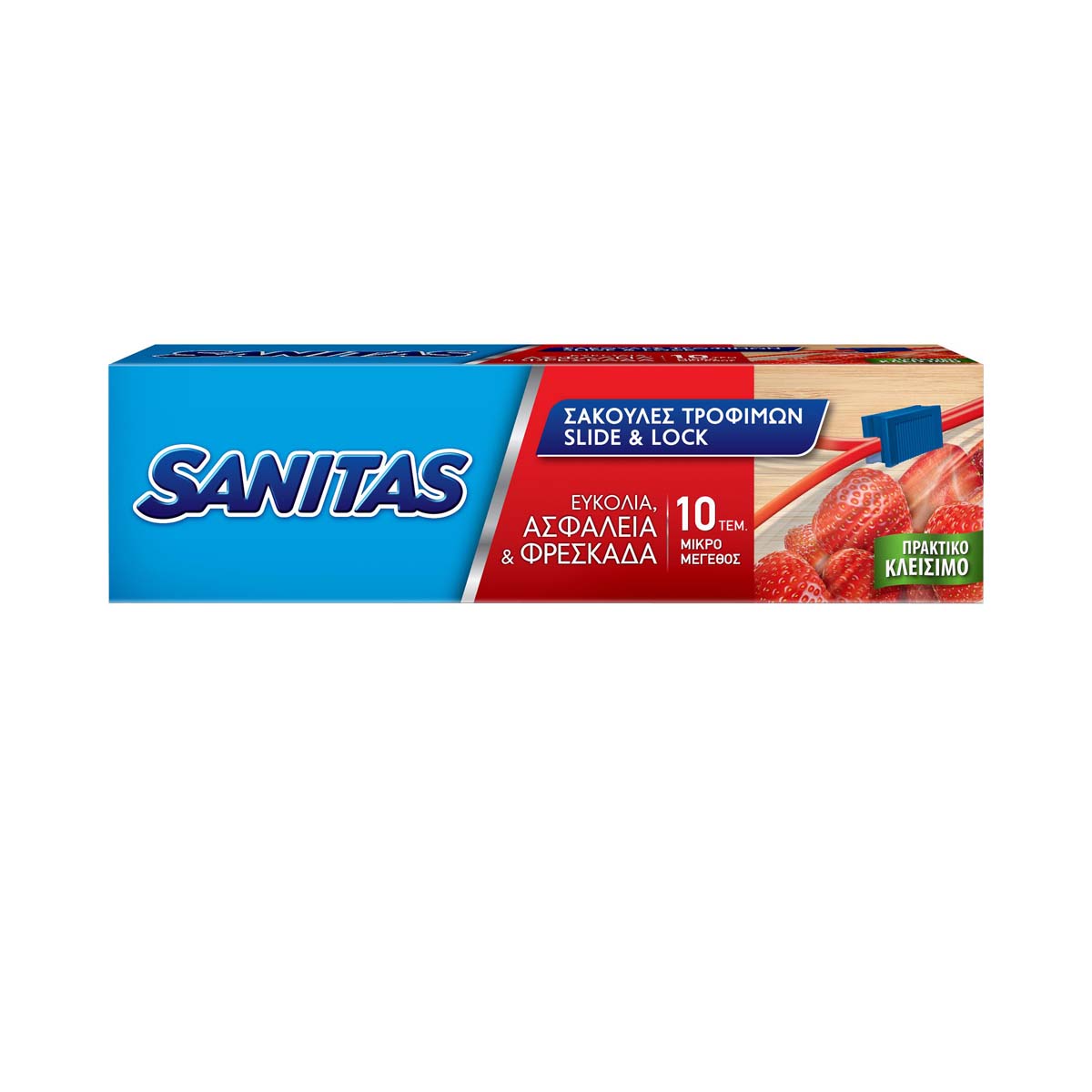 Sanitas food bags with practical Slide & Lock security closure keep food fresh for longer thanks to their airtight mechanism! They are highly durable and do not tear easily so you can easily and safely transport the food you want or any other items you want to protect from external factors (e.g. cosmetics or personal care items).-1.5 litres -They protect the freshness of food thanks to the airtight slide & lock safety closure -Food bags are highly durable and do not tear easily -Ideal for storing and transporting food and other items.
