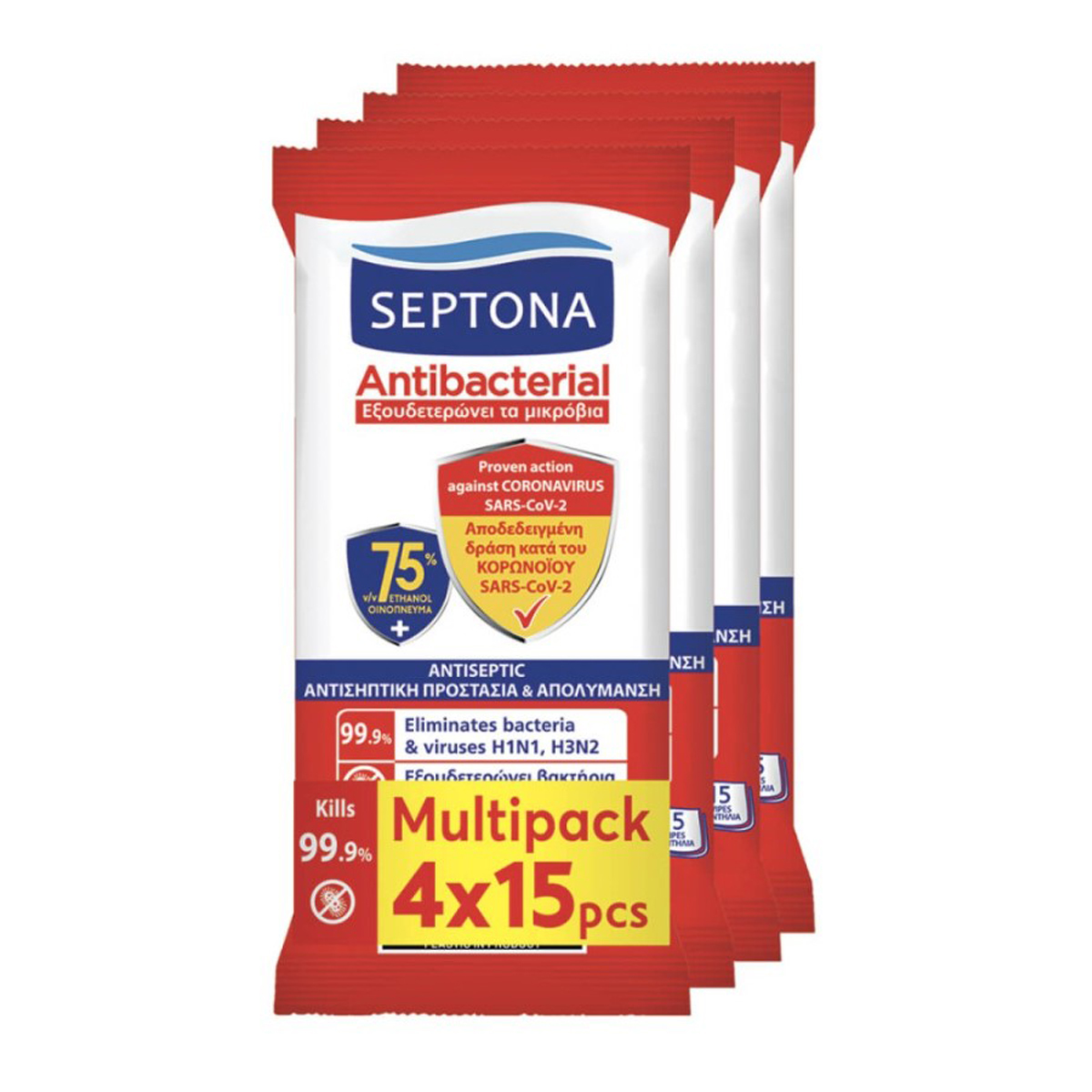 Septona Antibacterial Wipes 75% Alcohol 4 x 15 Pieces
