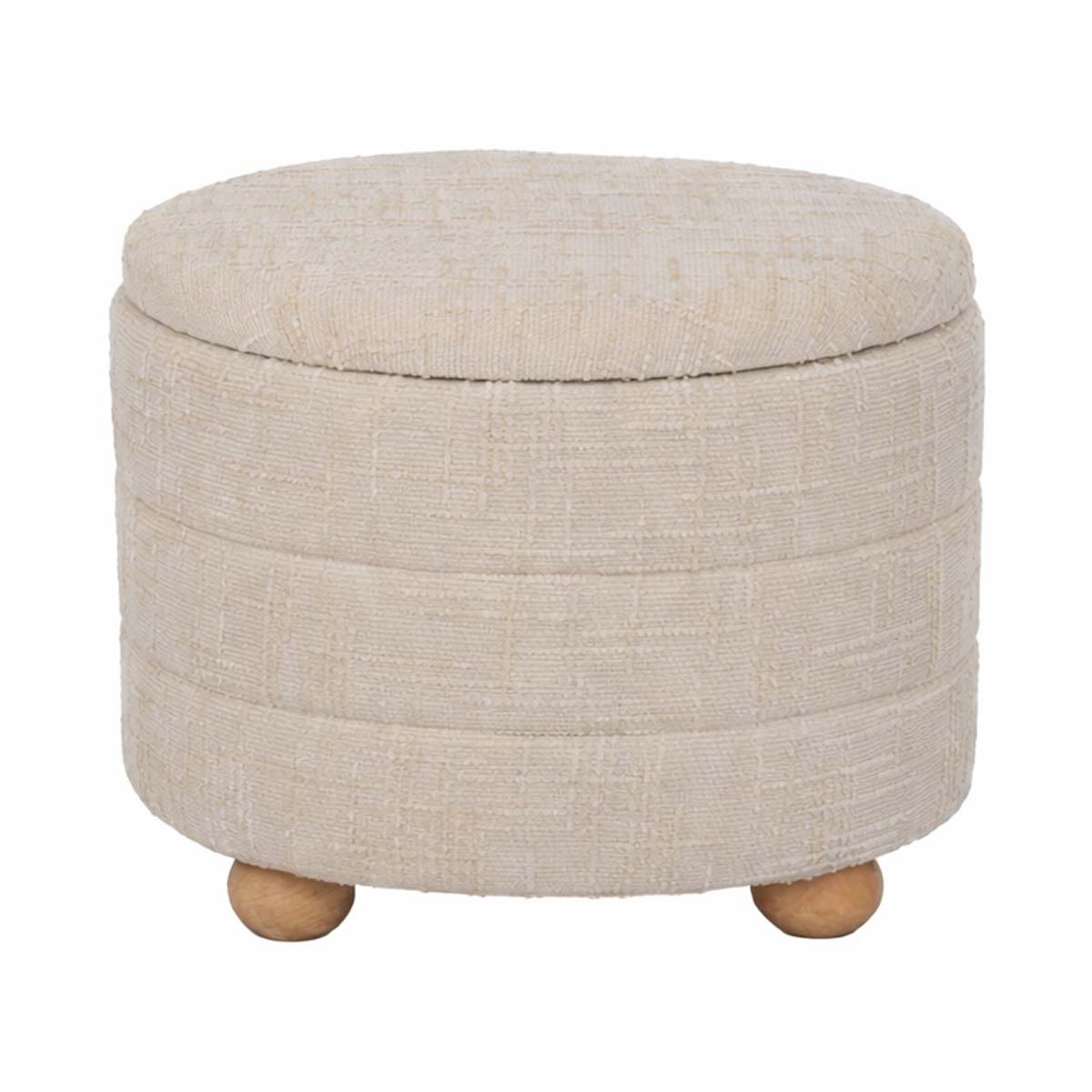 Σκαμπό Εκρού Υφασμάτινο Με Αποθηκευτικό Χώρο & Ξύλινα Πόδια 48 x 48 x 40 cm