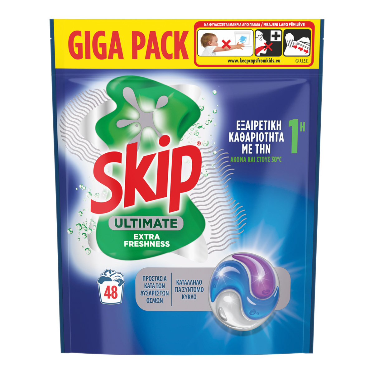 Skip Ultimate Κάψουλες Πλυντηρίου Ρούχων Extra Freshness 48 Μεζούρες 1012.8 gr