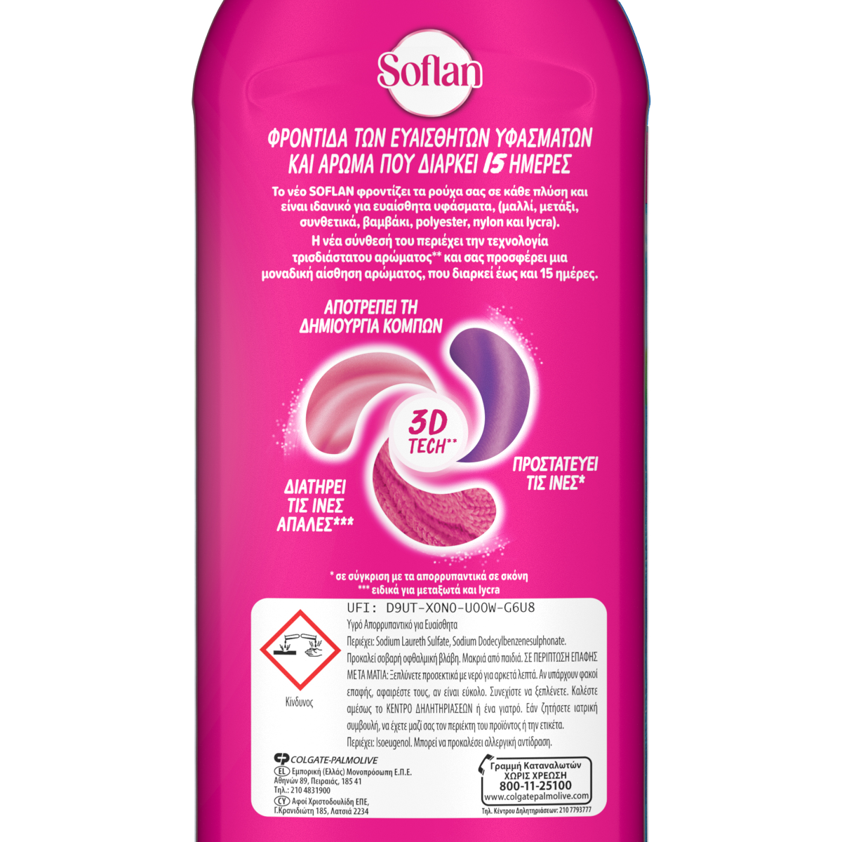 With its uniquely soft Soflan formula you can now enjoy and enjoy your wool and delicate clothes for a long time. Soflan's special formulation takes care of your favourite delicate ,woolen , silk and synthetic clothes. Enjoy the complete care of Soflan: It leaves your clothes noticeably clean and fragrant. With an anti-fuzz and anti-knotting formula. Preserves the elasticity of the fibres.