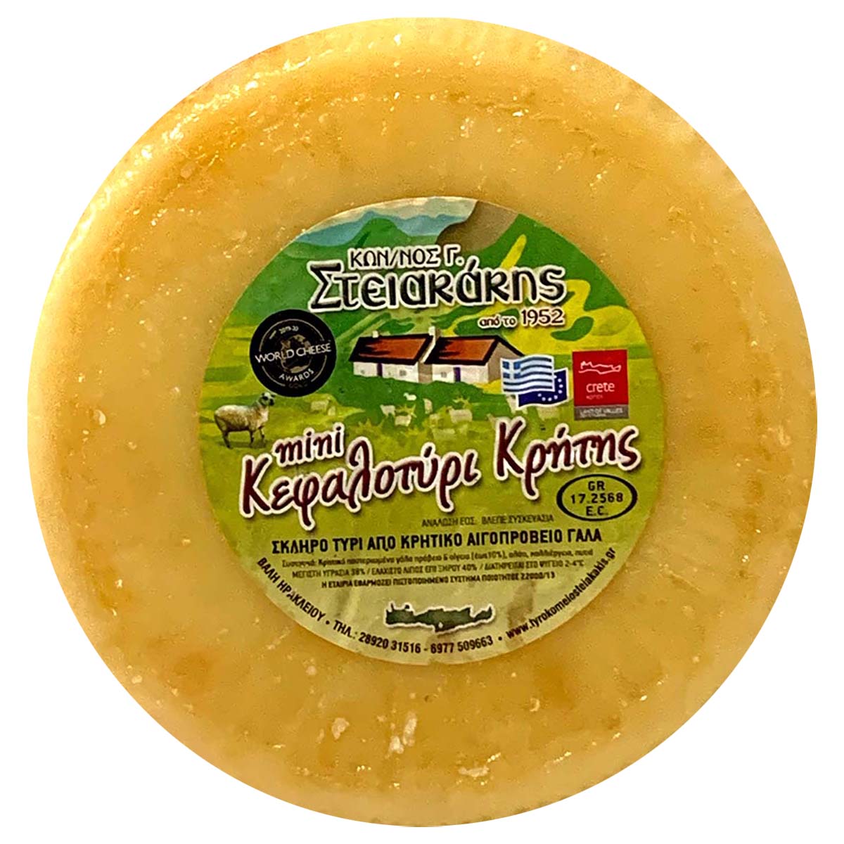 Kefalotyri Mini is a cheese with a cohesive mass and a pale yellow colour. Its taste is salty, spicy and fatty. Its fat content is 40% on a dry basis, and maximum moisture content is 38% with a good amount of salt. It is ideal for a pasta dish.