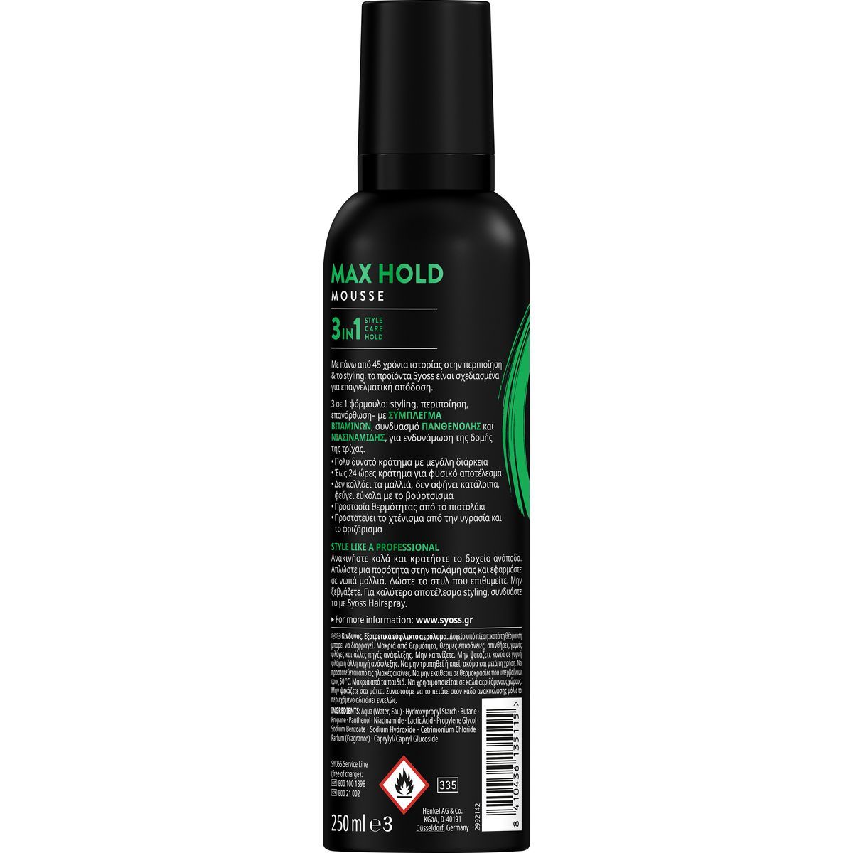 SYOSS MAX HOLD, provides up to 48 hours of very strong hold for total control of your styling. Its formula is non-sticky, easily removed by brushing, leaves no residue and helps protect hair from moisture and UV radiation.