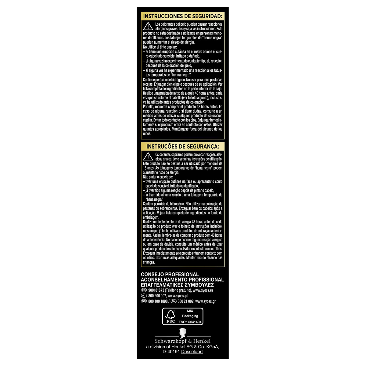 Syoss Oleo Intense - The permanent coloring cream WITHOUT AMMO is gentle on your hair and is suitable for UP TO WHITE HAIR. The dye formula contains oils that help the pigmented pigments penetrate deep inside the hair for MAXIMUM COLOR INTENSITY & LENGTH & LENGTH OF COLOR. The conditioner contains ARGAN PERIPOTENT OIL, known for its properties to leave hair soft, shiny and silky. It offers intensive care after the colouring process for STRONG HAIR THAT LOOKS SOFT. The Permanent Colouring Cream WITHOUT AMMONIA with ARGAN PERMANENT OIL offering maximum intensity of colour duration. PERFECT WHITE COVERAGE, WITHOUT AMMONIA, MAXIMUM COLOR INTENSITY & DURATION, ARGAN CONDITIONING OIL, STRONG HAIR THAT LOOKS HEALTHY.