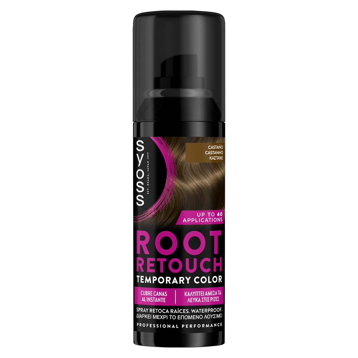 Temporary coverage spray for the root area, which immediately covers the whites. It dries quickly and gives a uniform result without contrasting with your hair colour. The high-precision spray valve allows application only where needed. Lasts until the next shampooing. Quantity sufficient for up to 40 applications. Application: Shake well before use. Cover your shoulders with a towel. Spray by holding the bottle in an upright position and applying gentle pressure. Apply evenly to dry and combed roots, spraying gently from a distance of 10 cm. Excessive amount may cause friction. Suitable for daily use between dyes.