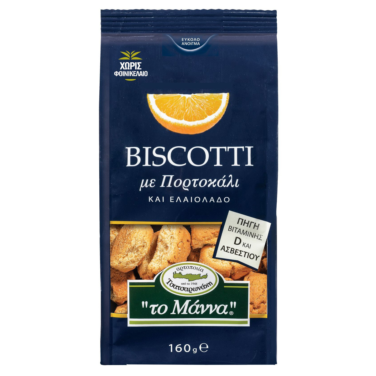 Pure, delicious pure Cretan biscuits. These are The Manna Biscotti with orange and olive oil. Small, delectable, sweet bites to enjoy at home, in the office, alone or with friends. Attention! They are highly addictive.