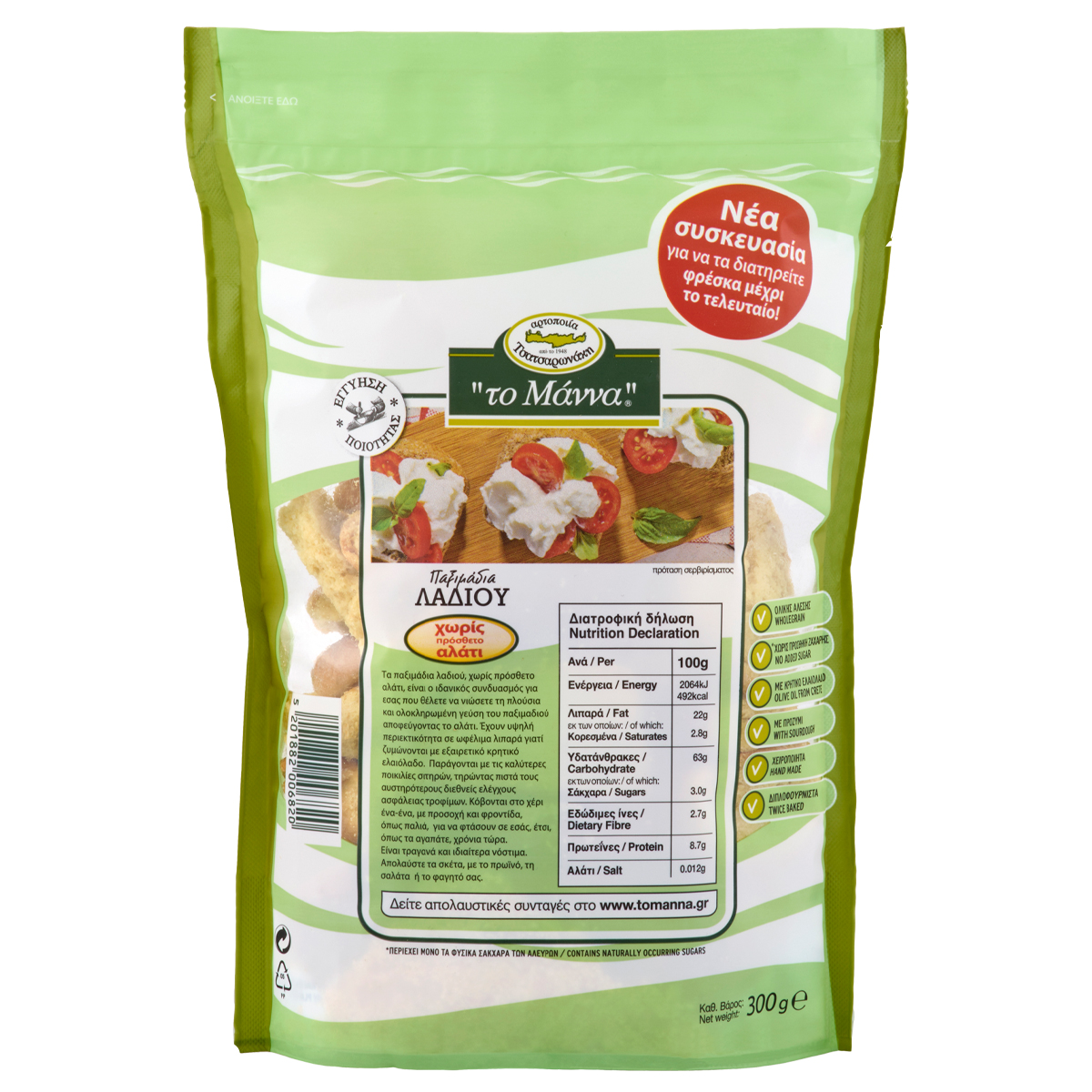 A particularly tasty and nutritious proposal without added salt, but with excellent Cretan olive oil (15%) and high content of beneficial fatty acids (monounsaturated). It is ideal for those who avoid salt, but do not want to miss out on any of the taste.