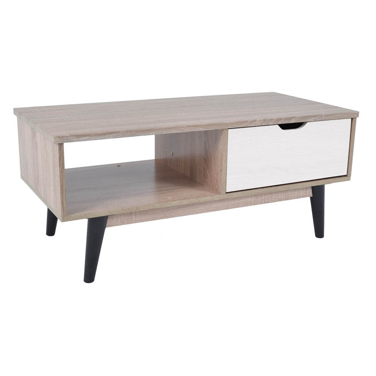Multipurpose wooden furniture in natural color with white drawer and elegant legs in black color. It is functional with modern design and timeless style. Assembly instructions are included in the package.