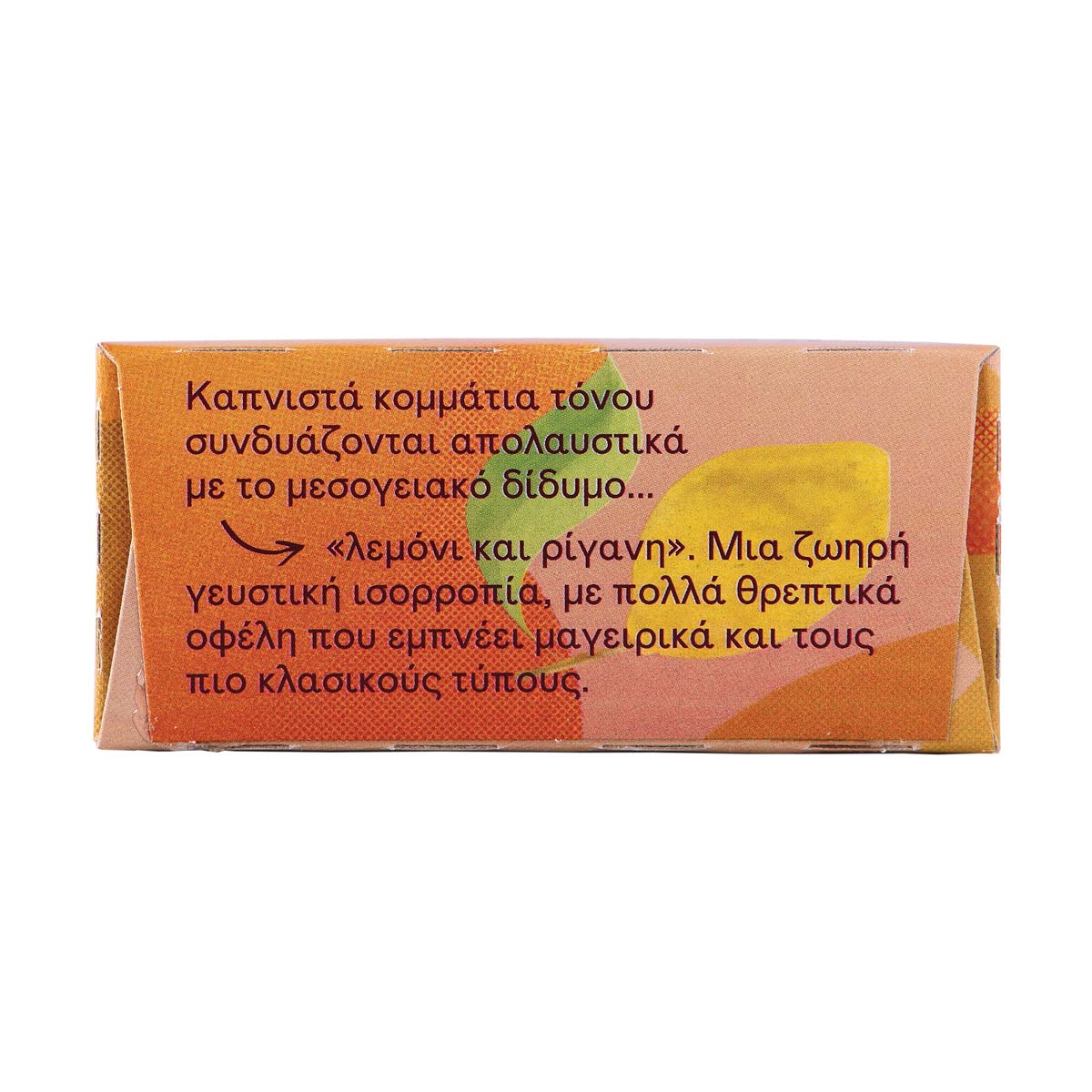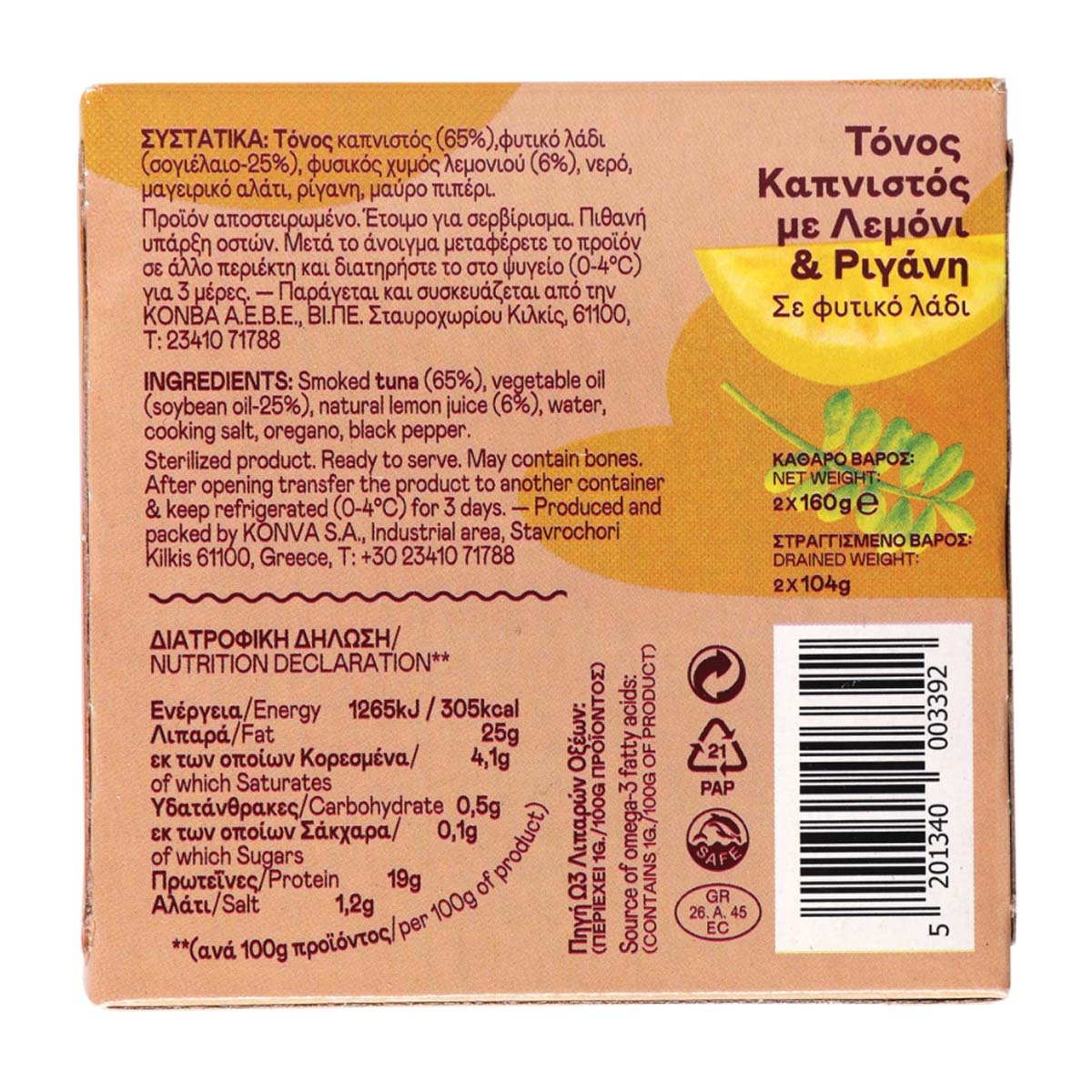 High quality tuna, with the special flavor character that is given by the special treatment of natural smoking with a special mixture of woods. The constant control during the smoking process and the choice of a slow natural smoking at low temperatures ensure the balance in taste. The natural aromatic ingredients of tuna and the addition of lemon and oregano create a special product for tuna lovers.