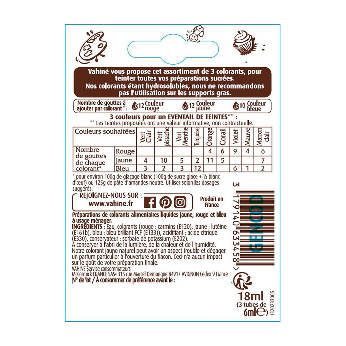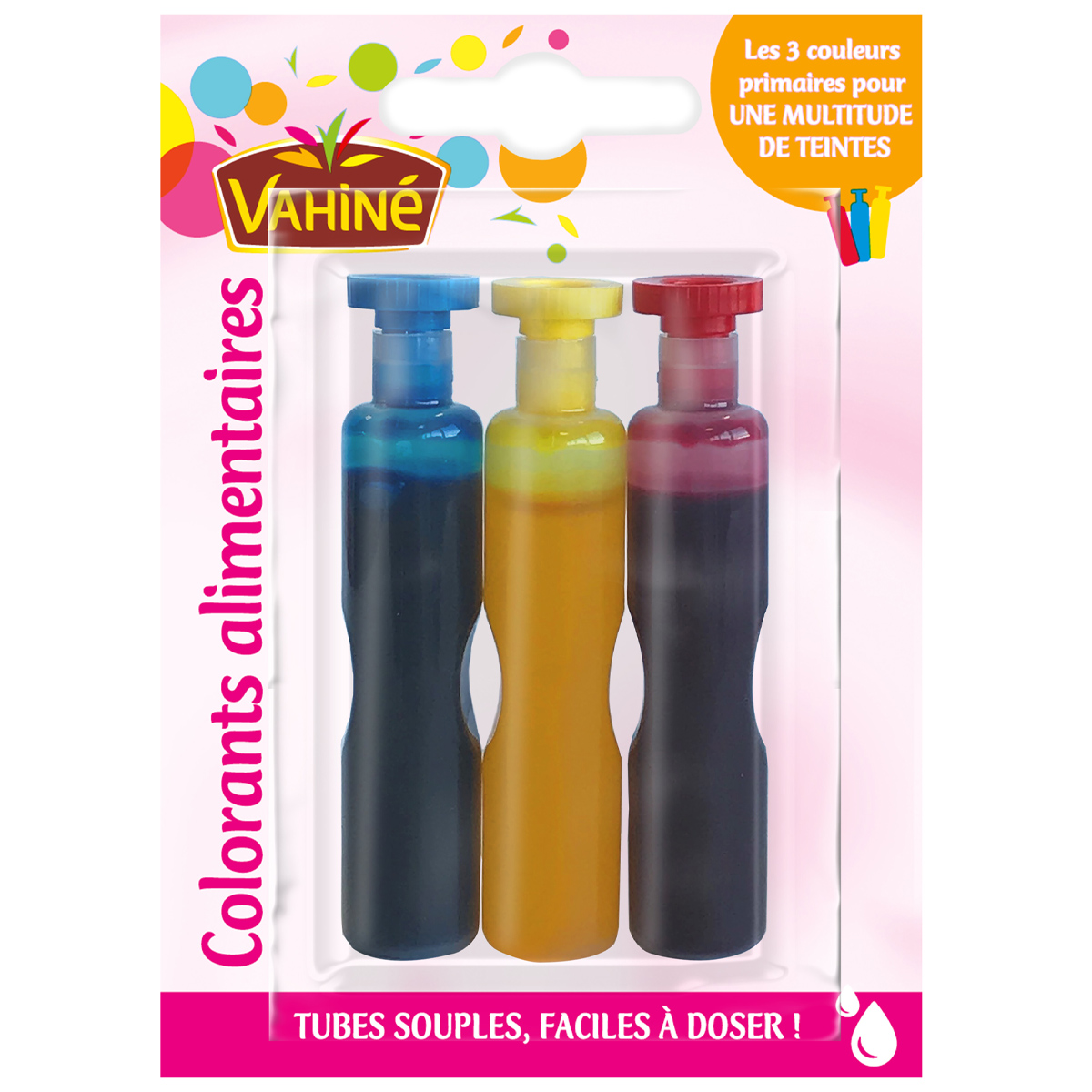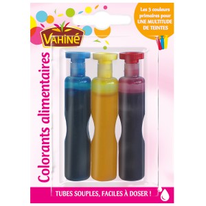 Liquid dyes in three basic colours: blue, yellow and red. By combining them appropriately, any other colour can be created and the effect can be enhanced!