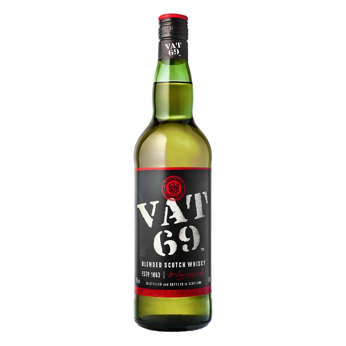 VAT69 is one of the most famous brand names in the history of Scotch whisky, the proud creation of William Sanderson & Son, founded in the 19th century. It is a blend characterised by its sweet, full-bodied flavour and warm, generous character.