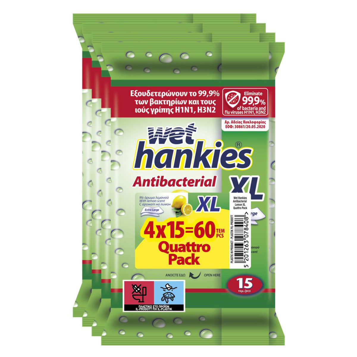Wet Hankies Wet Wipes Lemon XL 4 x 15 Pieces