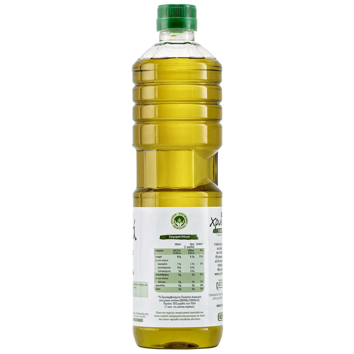 Fine combination of oils with a distinctive aroma and full of sweet taste. A classic delight with a golden green colour, Chrysella olive oil is your everyday oil.