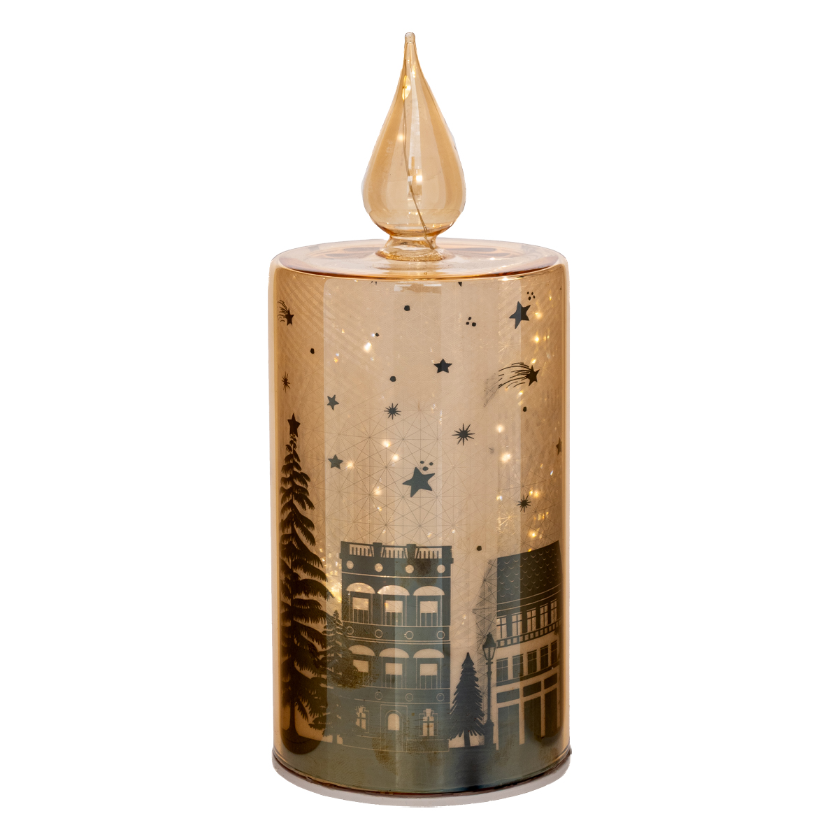 Χριστουγεννιάτικο Κερί Περιστρεφόμενο Γυάλινο Led Χρυσό 9 x 9 x 24 cm