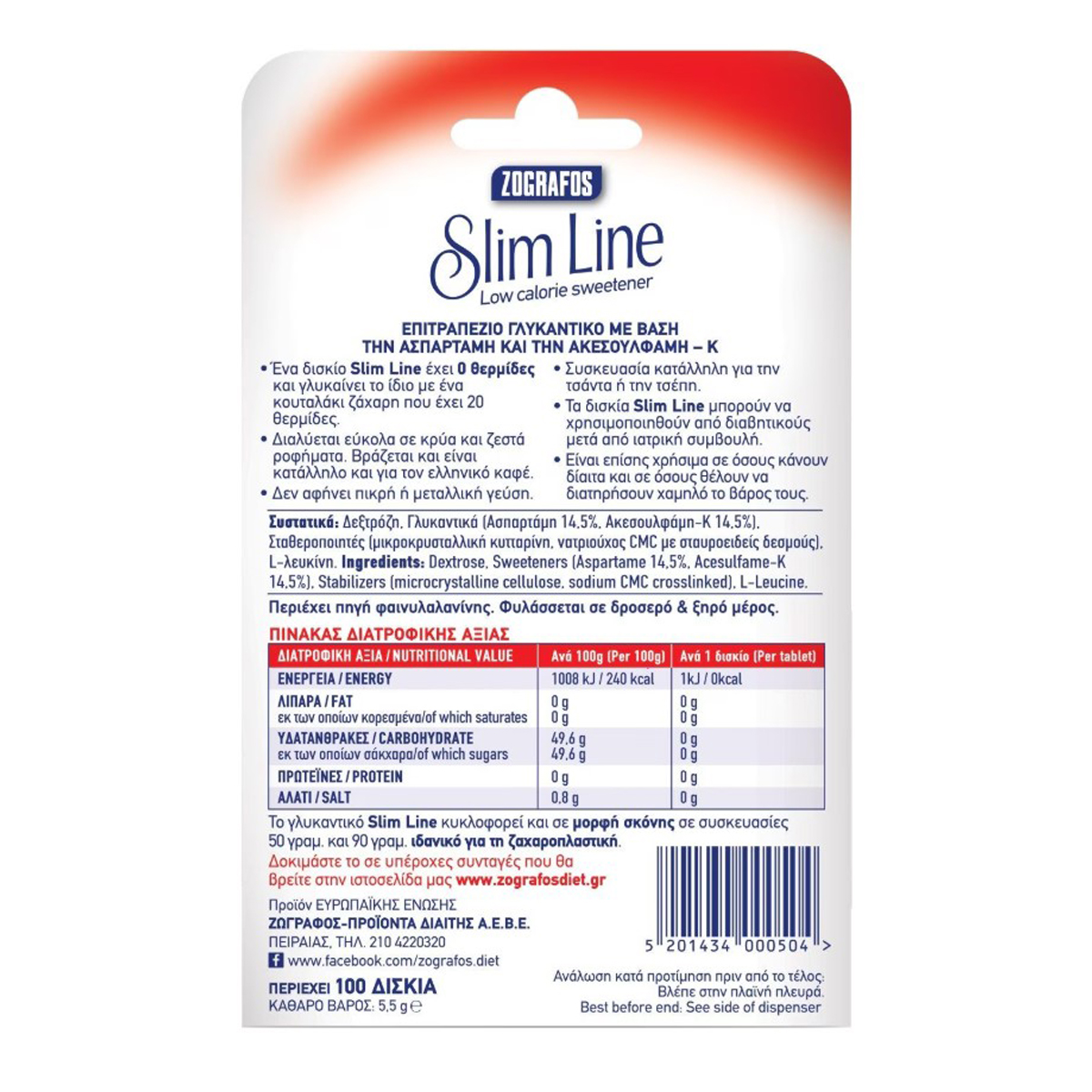 One Slim Line tablet has 0 calories and is as sweet as a teaspoon of sugar which provides 20 calories. It is useful for those who want to limit the calories they take in without depriving themselves of sweets.