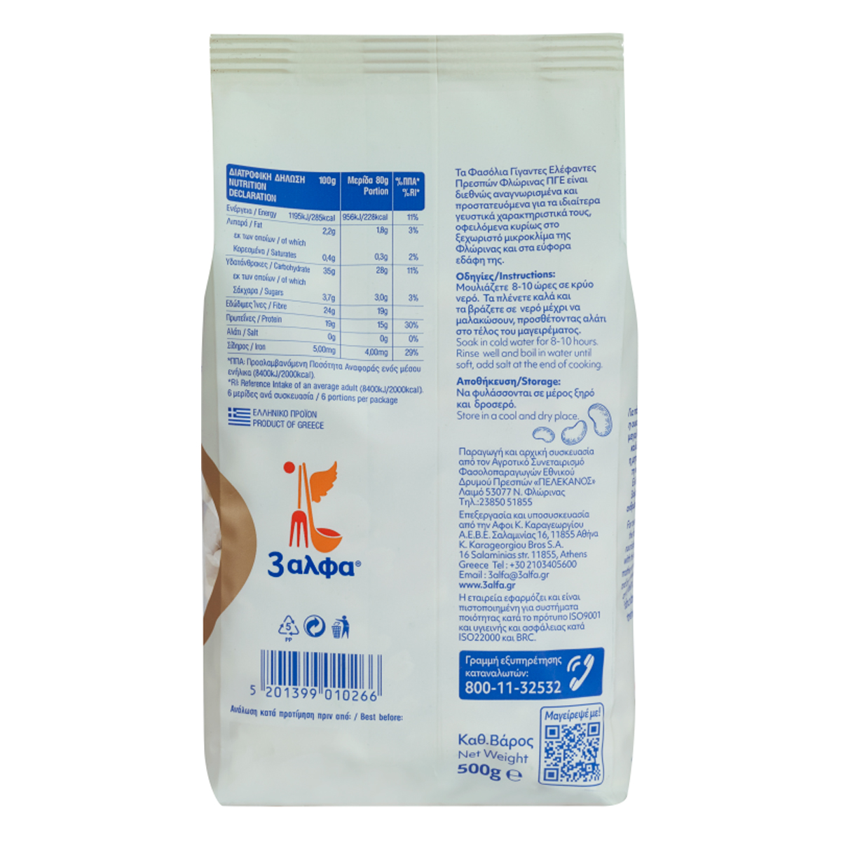 Τα Φασόλια Γίγαντες Ελέφαντες Πρεσπών Φλώρινας ΠΓΕ είναι διεθνώς αναγνωρισμένα και προστατευόμενα για τα ιδιαίτερα γευστικά χαρακτηριστικά τους, οφειλόμενα κυρίως στο ξεχωριστό μικροκλίμα της Φλώρινας και στα εύφορα εδάφη της.